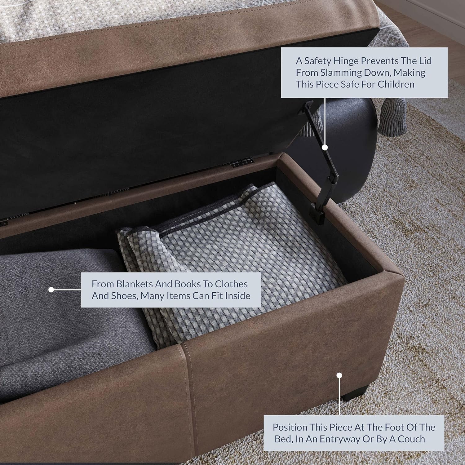 BELLEZE Storage Faux Leather Ottoman, 47 Inch Bench Bedroom Bench with Safety Close Hinge, Extra Long Ottoman with Storage for Living Room, Entryway, Foot Rest, Support 300lbs - Rustic Brown