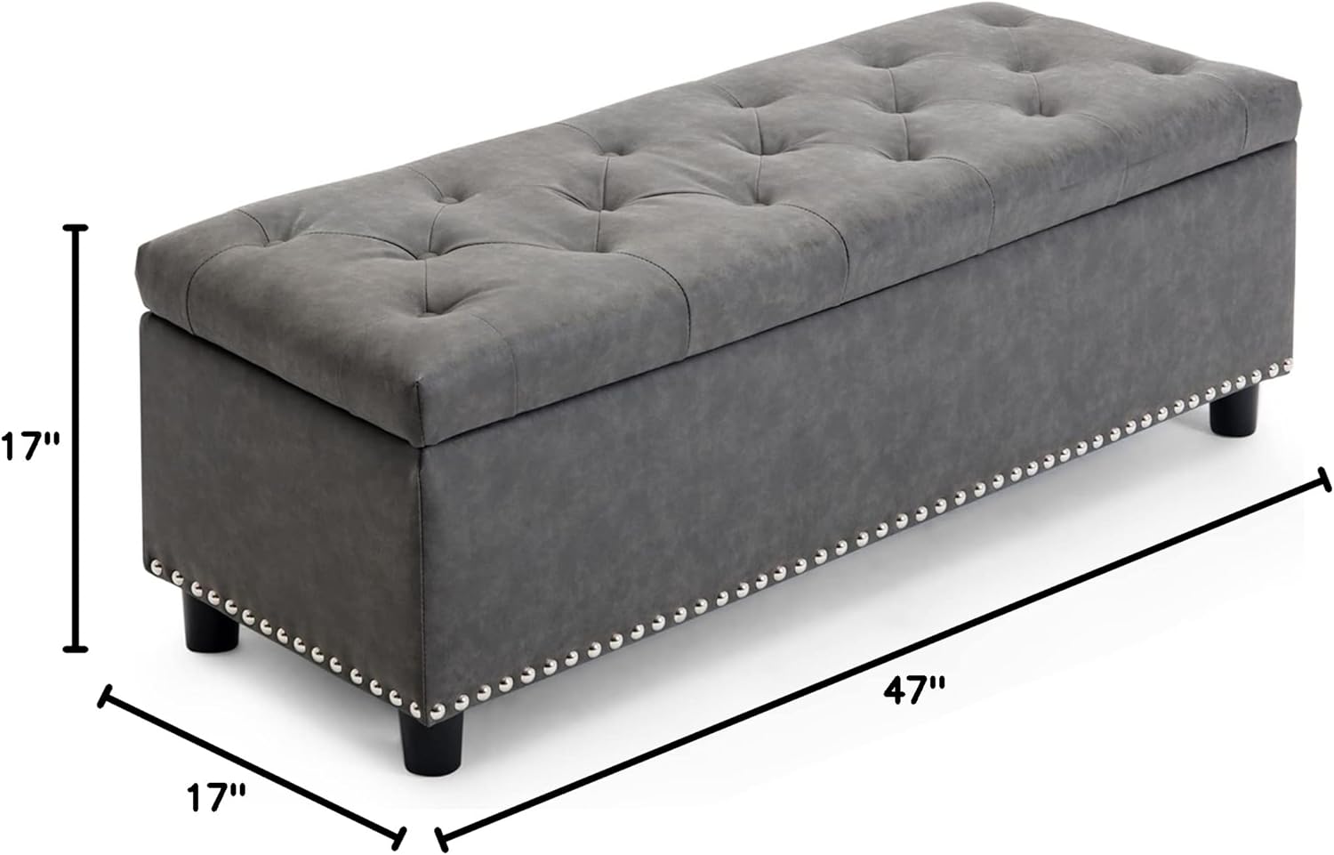 BELLEZE 47" Storage Ottoman, Storage Bench with Safety Close Hinge, Faux Leather Button-Tufted Ottoman for Living Room, Entryway, Hallway, Foot Rest, Support 300lbs - Rustic Gray