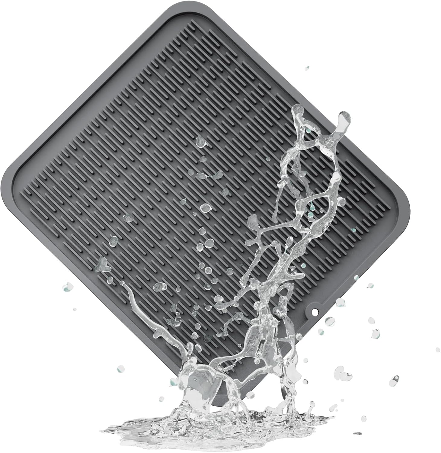 ZLR Silicone Dish Drying Mat for Kitchen Counter, Eco-Friendly Fast Dry Dish Mat, Easy Clean Multi Usage Drying Matt, Heat Resistant Trivet, 16" x 18" XL, Dark Gray