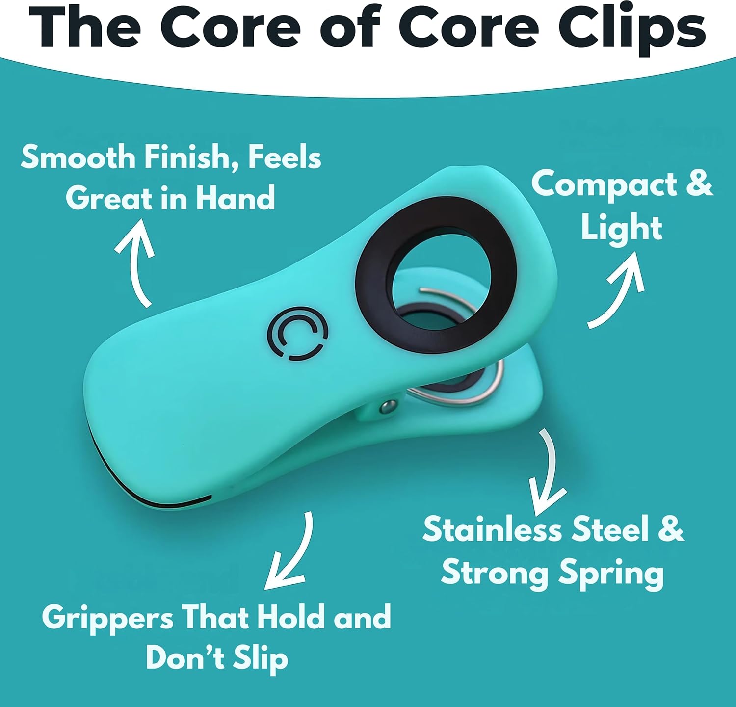 • SMARTER DESIGN, ZERO HASSLE. Forget awkward towel bands that are hard to stretch or a struggle to use. CoreClips provide superior holding power with a simple, effortless pinch mechanism. Their smooth edges won't snag or tear fabric, offering a reliable, stylish, and practical solution for your vacation setup.