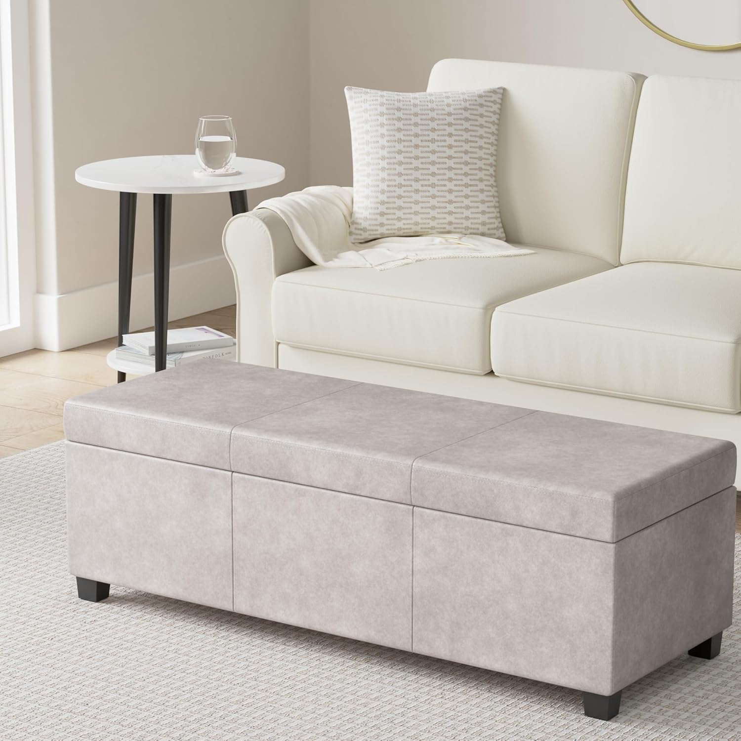 SIMPLIHOME Avalon 48 inch Wide Contemporary Rectangle Storage Ottoman Bench in Distressed Grey Taupe Vegan Faux Leather, Assembled, for the Living Room, Entryway and Family Room