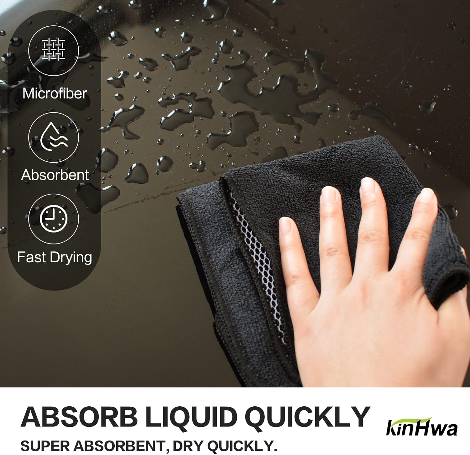 KinHwa Kitchen Washcloths for Dishes Absorbent Microfiber Dish Cloths Quick Dry Dish Rags with Poly Scour Scrub Side Ideal for Kitchen Cleaning (Black, 12inchx12inch 18 Pack)