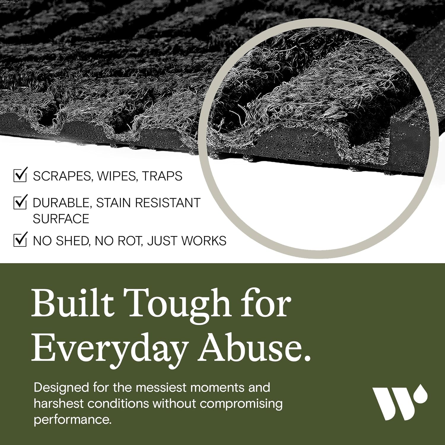 • DURABLE, ECOLOGICAL CONSTRUCTION: Made in the USA, our WaterHog entrance mat is crafted with up to 90% recycled PET fiber and 20% recycled rubber backing, ensuring durability and long-lasting performance in high-traffic areas, both indoors and outdoors.