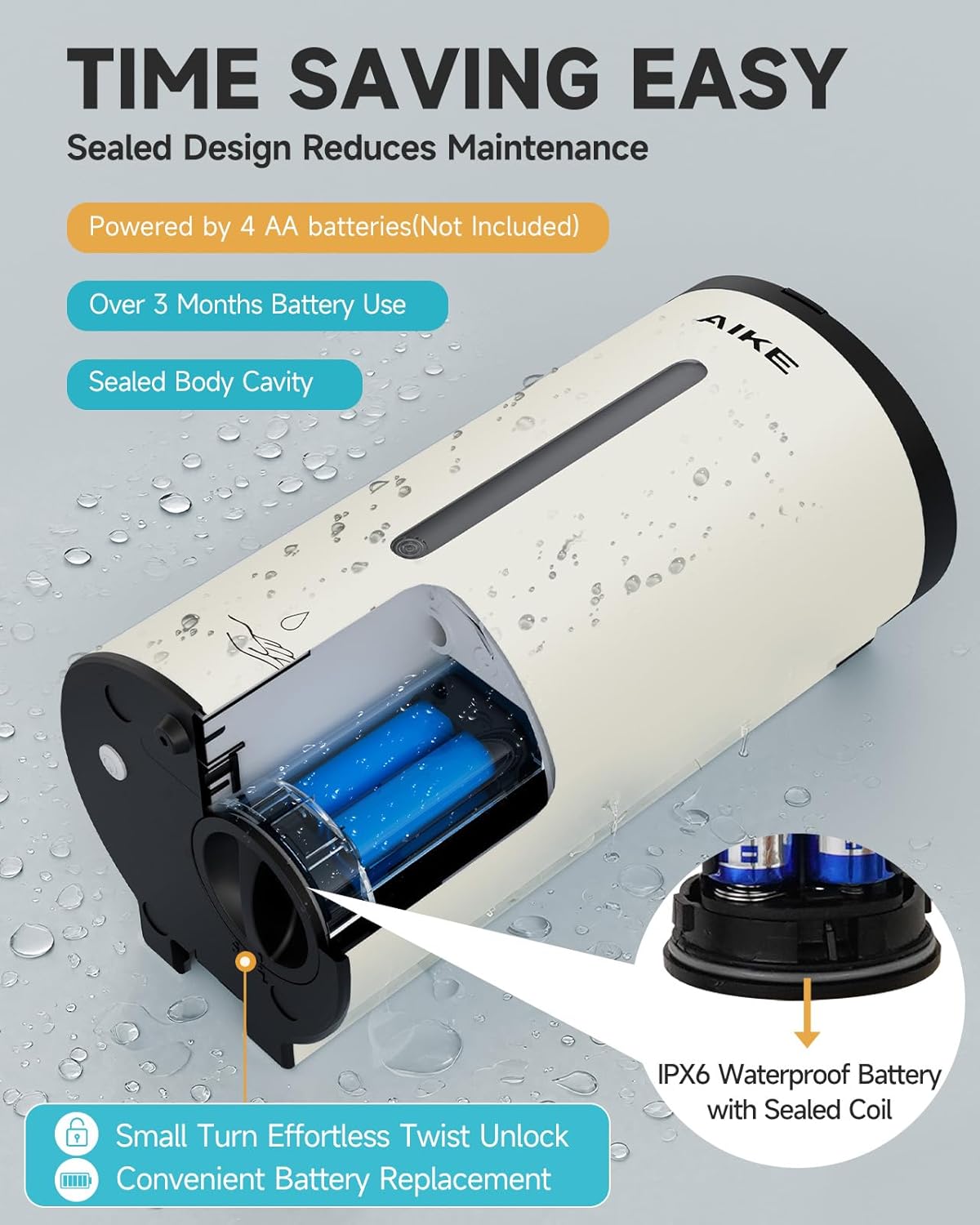 • Time-Saving: Powered by 4 AA batteries (not included). The sealed waterproof cavity and battery compartment with waterproof coil ensure long standby and easy maintenance