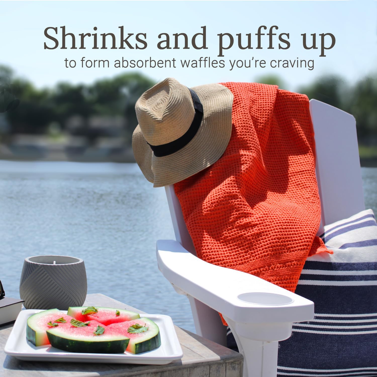 • Lightweight Waffle Bath Towels: Completely wraps around your body and stays tucked in. Naturally thin bath towels take up less space in your closet, laundry machine, beach towel bag, pool towels bag, suitcase, boat, camper, RV or yacht.