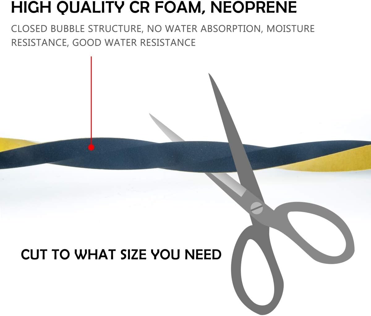 • 【ADJUSTABLE & FLEXIBLE】This package includes 2 rolls of 1/2 in x 3/8 in x 6.5 ft foam tape, total 13 feet long.The Neoprene sponge foam tape is easy enough to customize and cut to size with scissors or blade, and bend easily and conform to any shape.We used a high quality, ultra-strong adhesive backing that ensures this insulation foam tape stays in place indefinitely once applied. You are therefore assured that it will not peel off.