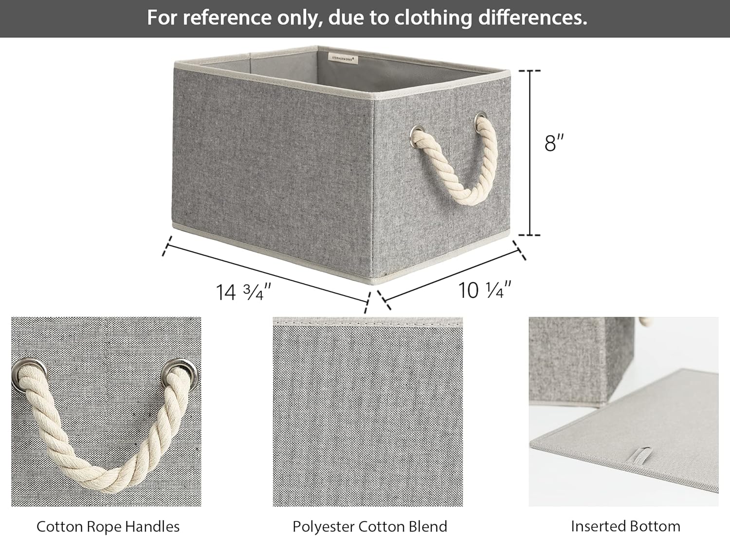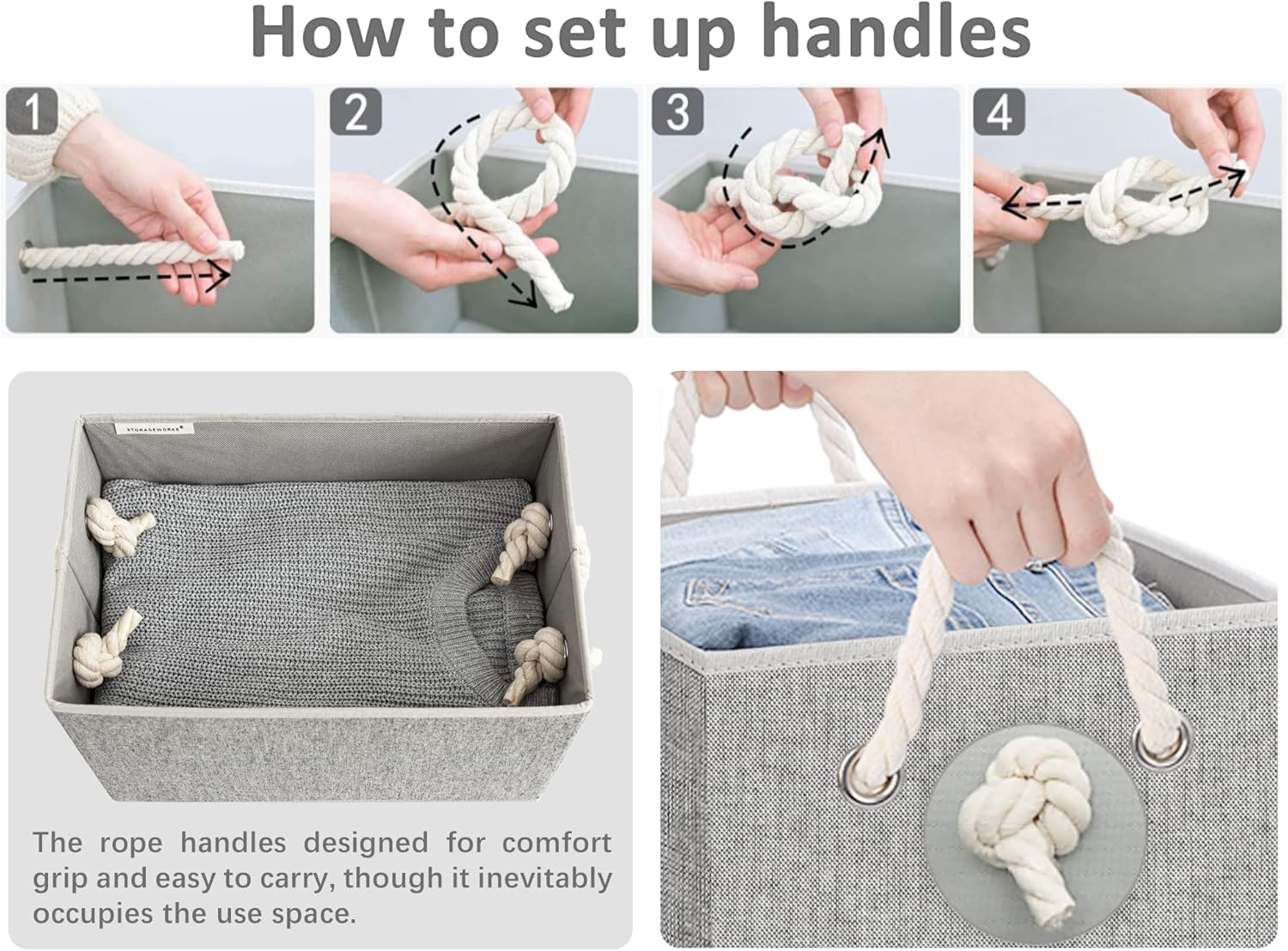 • Closet baskets feature two soft rope handles for comfortable grasping and easy carrying.