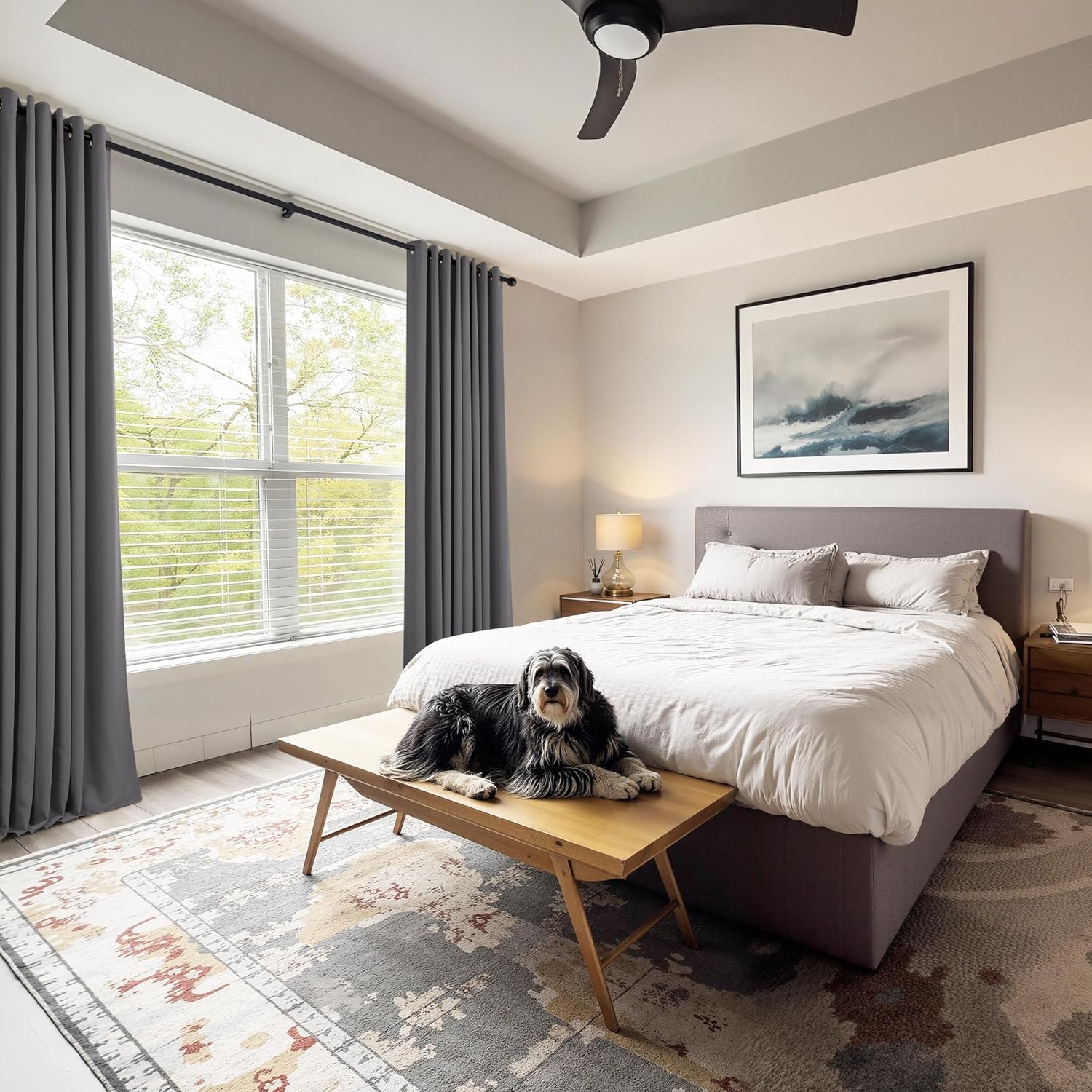 PONY DANCE Blackout Curtains for Bedroom 80 inch Long 2 Panels Set, Thermal Insulated Drapes Noise Reducing Solid Grommet Top Window Curtains for Home Decoration and Doorway, W55 x L80 inch, Grey