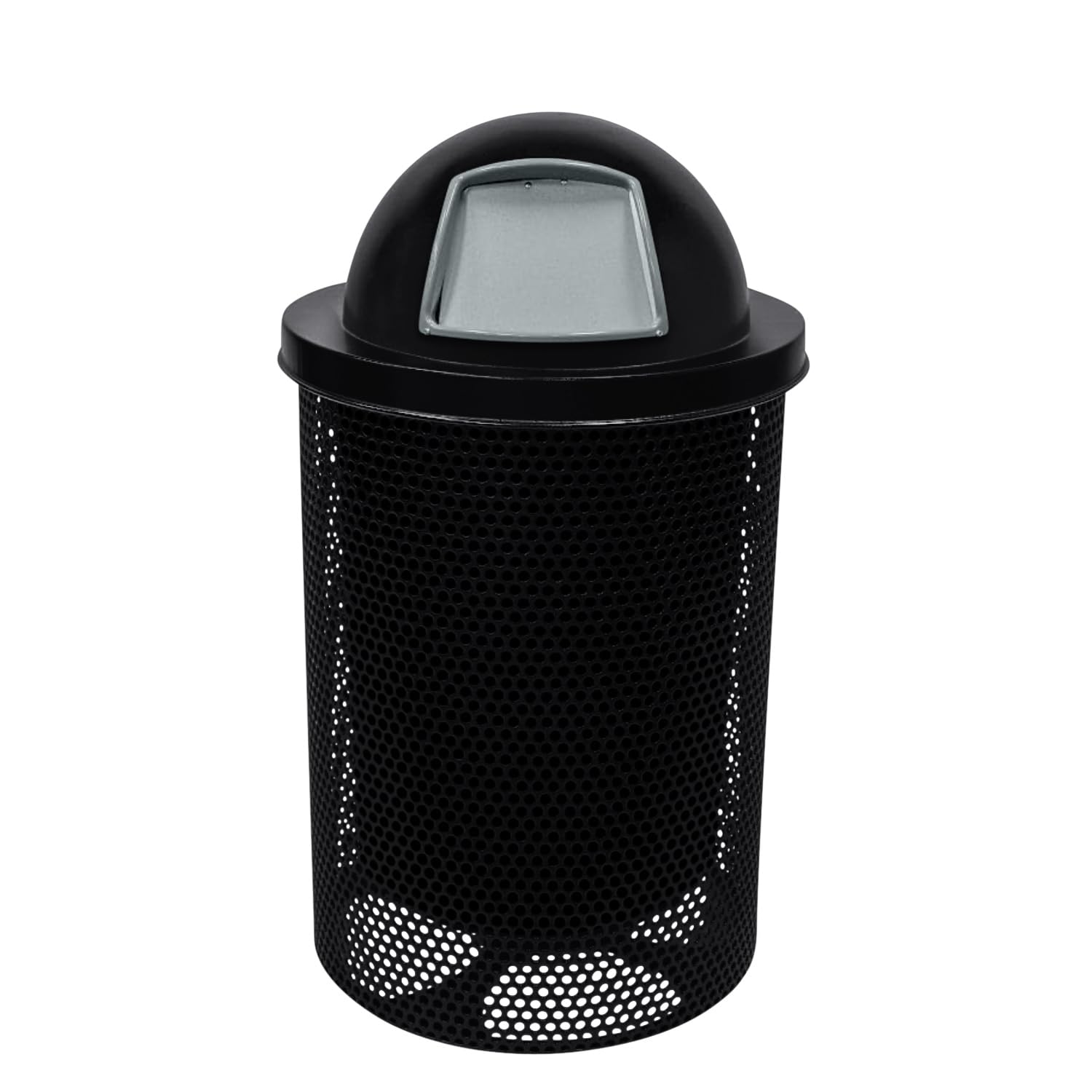 COATEDOUTDOORFURNITURE RDT-P-BLK Heavy Duty Round Trash Receptacle with Dome Top, Liner Included, 32 Gallon, Black, Made in America