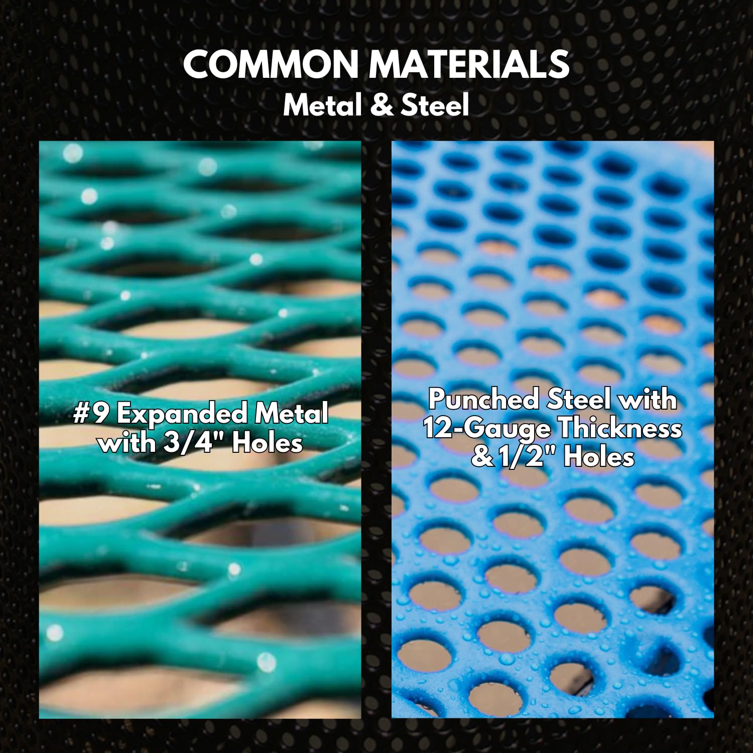 • UNIQUE POLYETHYLENE COATING: We exceed numerous industry standards with our unique coating system that has the highest adhesion rating on the market. Our thick coating is scratch-resistant & won't peel or crack. Our expanded metal & punched steel styles reduce dirt & moisture buildup.