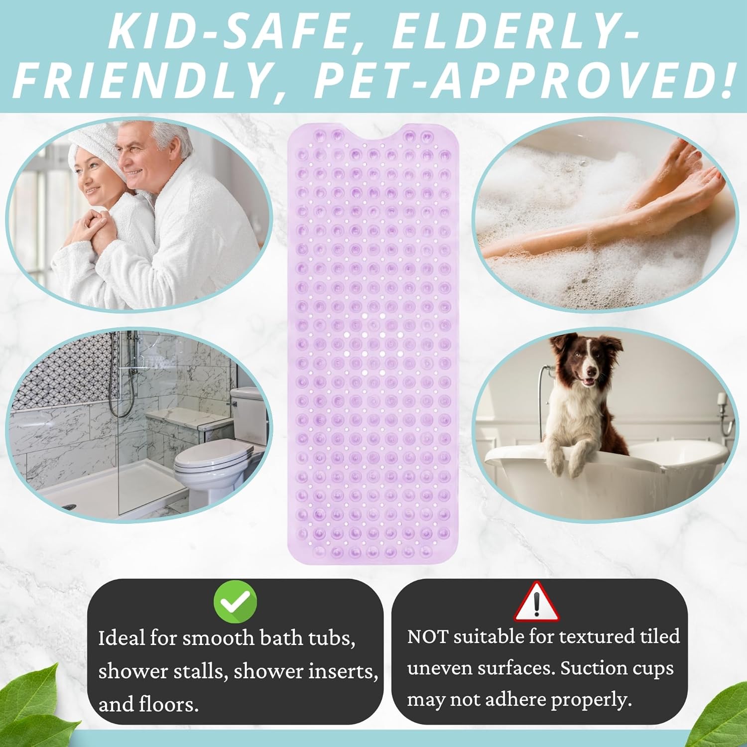 ENKOSI Bath Mat - Large Non Slip Bathtub & Shower Mat - Extra Long 40 x 16 Inch Bathroom Mats for Tub Nonslip Anti Slip Bathmats (40x16 Clear Purple 1-Pack)