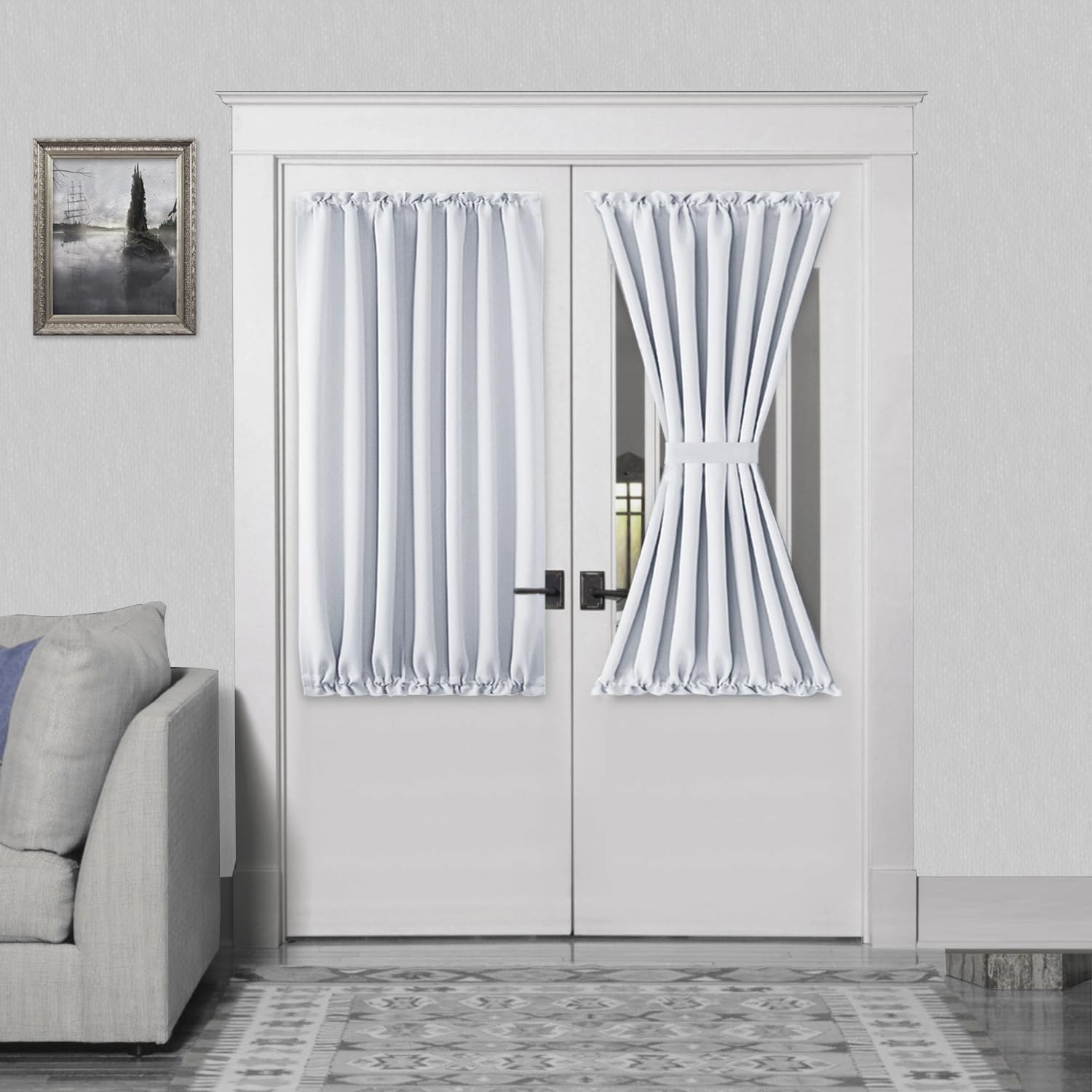 DWCN French Door Curtains – Rod Pocket Thermal Curtain for Doors with Glass Window, Kitchen and Patio Doors for Privacy, 54 X 40 Inch Length, 1 Curtain Panel with Tieback, Greyish White