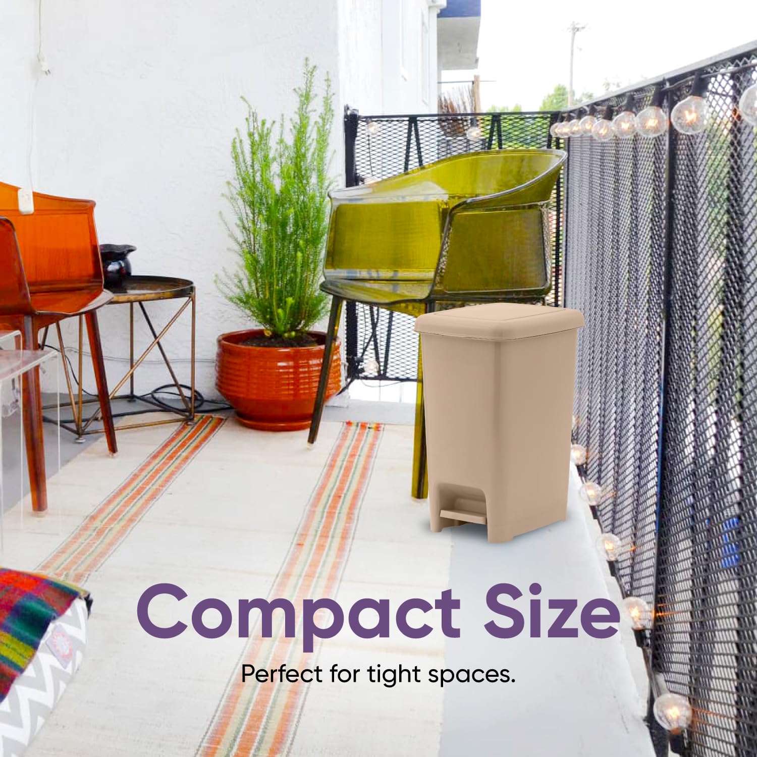 Superio Slim Step On Trash Can, Beige Waste Bin with Foot Pedal Lid 26 Liter, Kitchen, Under Desk, Office, Bedroom, Bathroom (1, 6.5 Gallon)