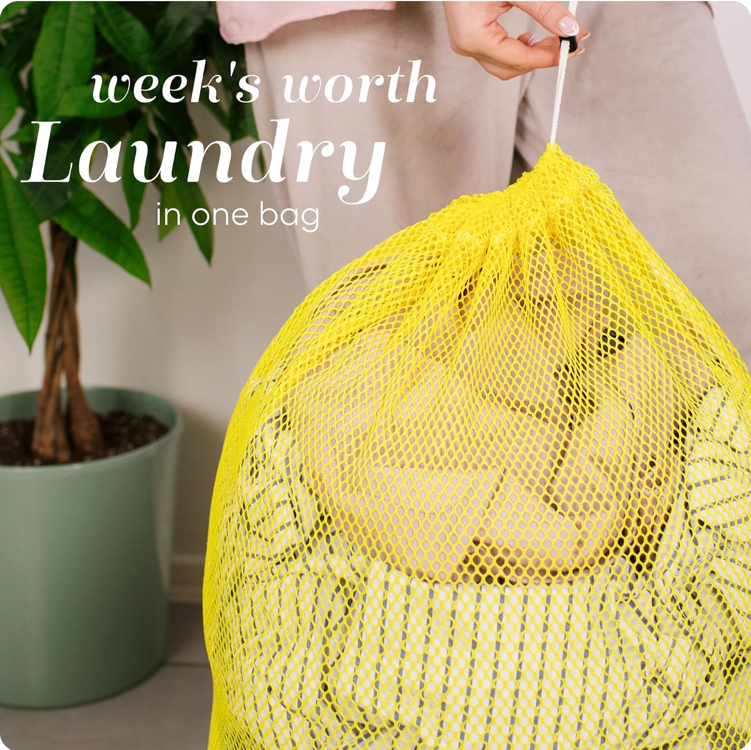 Handy Laundry Mesh XL Laundry Bags - Durable, Machine Washable with Secure Drawstring Closure - Perfect for College Dorms, Laundromats, Apartments (Yellow, Large 24" x 36", 2-Pack)