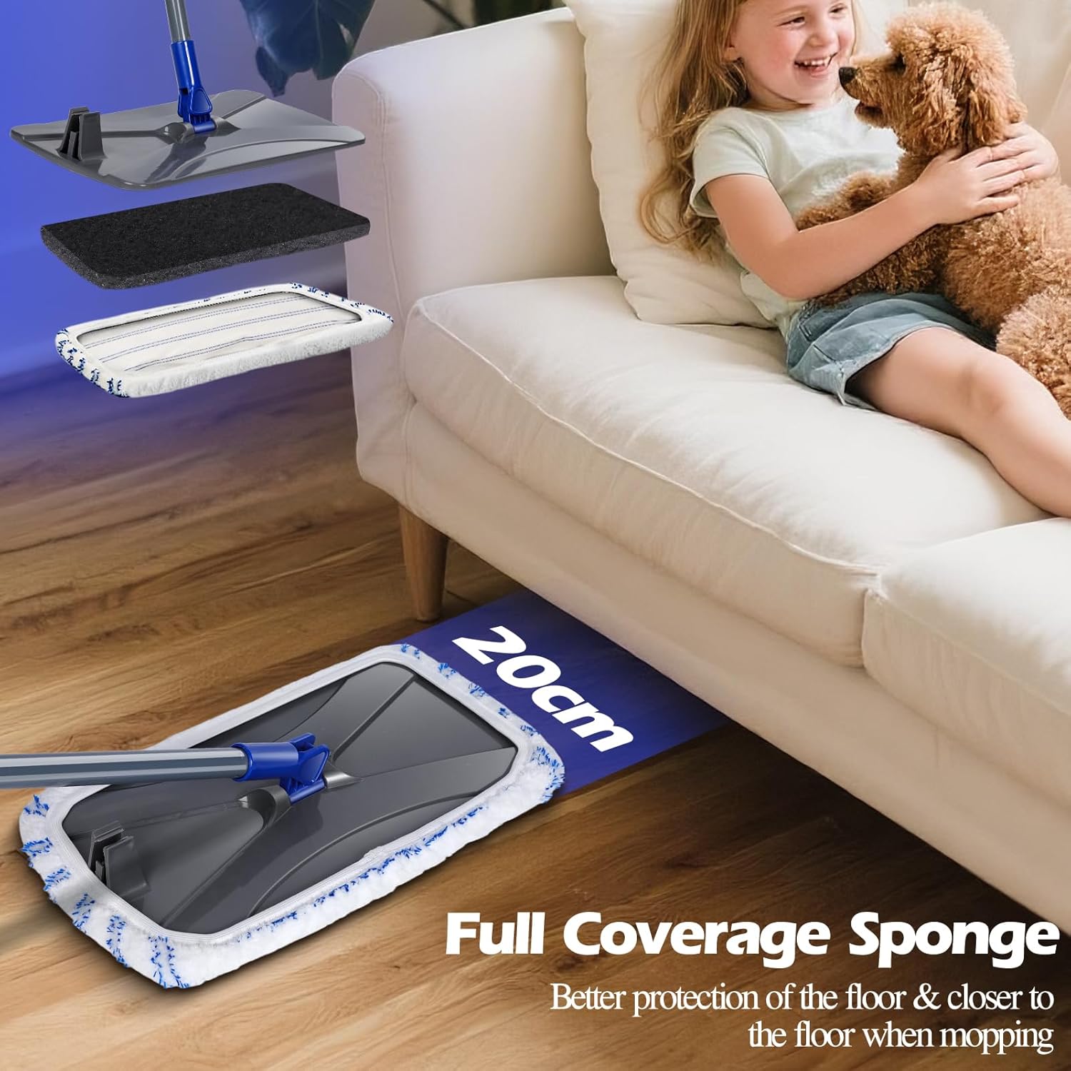 • 360° Rotation:The dust mop head can rotate 360° to reach any gaps and deep corners under furniture with ease. An extra scraper can help you clean dirt stuck on the microfibre mop pad.Search ASIN B07YCF3ZWN for replacement pads.