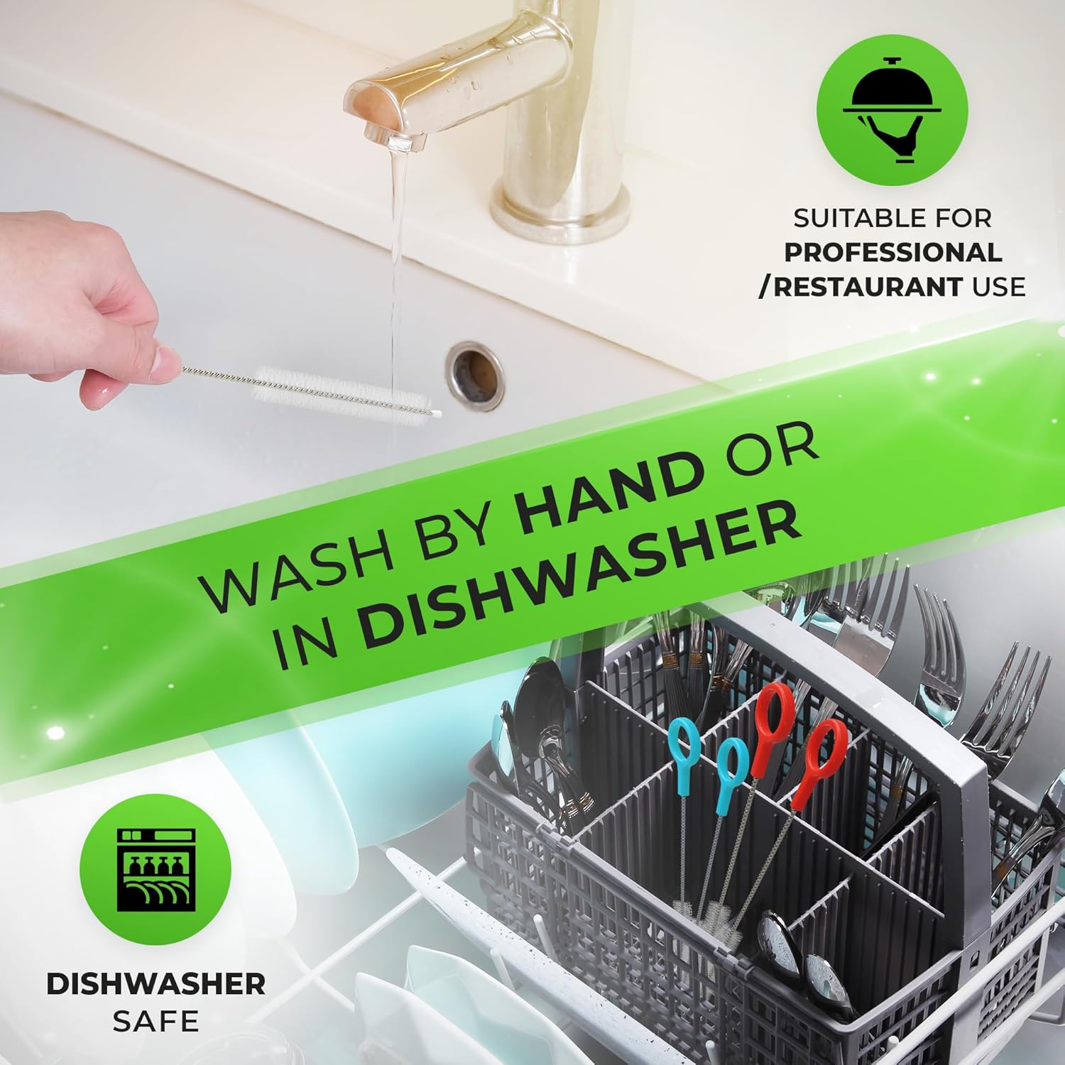 • MULTI-PURPOSE - Many different uses apart from reusable straw cleaner brush(plastic, metal, silicone, bamboo). Other uses include cleaning small bottles, food processor and various kitchen appliances parts, test tubes, funnel necks, small plumbing pipes and other hard to access corners, precision tools, tea pot or coffee pots, sippy cup medicine dispenser, perculator, cpap tubes, glass pipes. Can also be used for various tumblers like Yeti, Tervis, Rtic, Bubba, Ozark, Klean Kanteen.