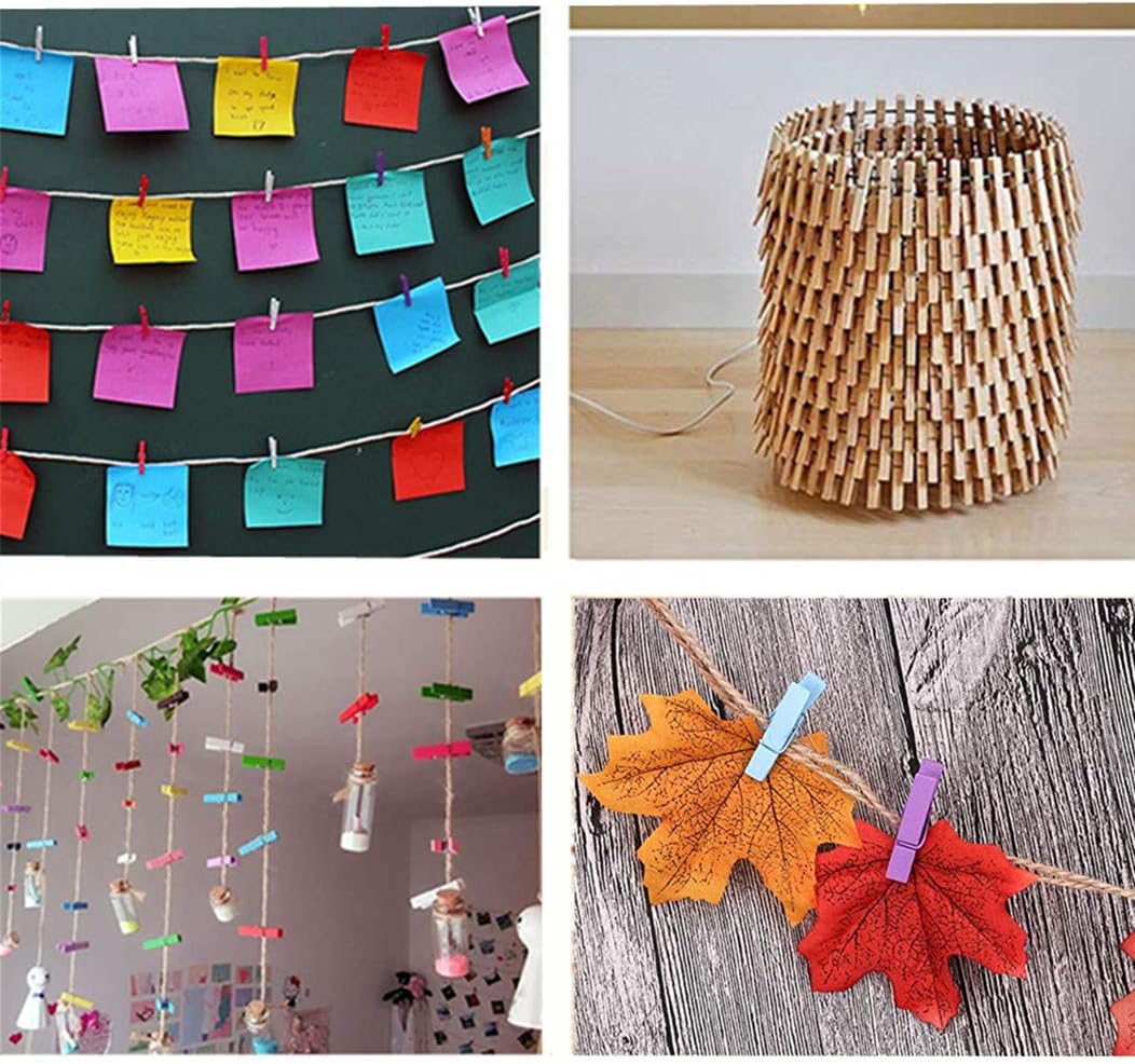 • Tiny Wood Clothes Pin Set: 50 PCS Yellow Clothespins and 10 Meters (33feet) Jute Twines