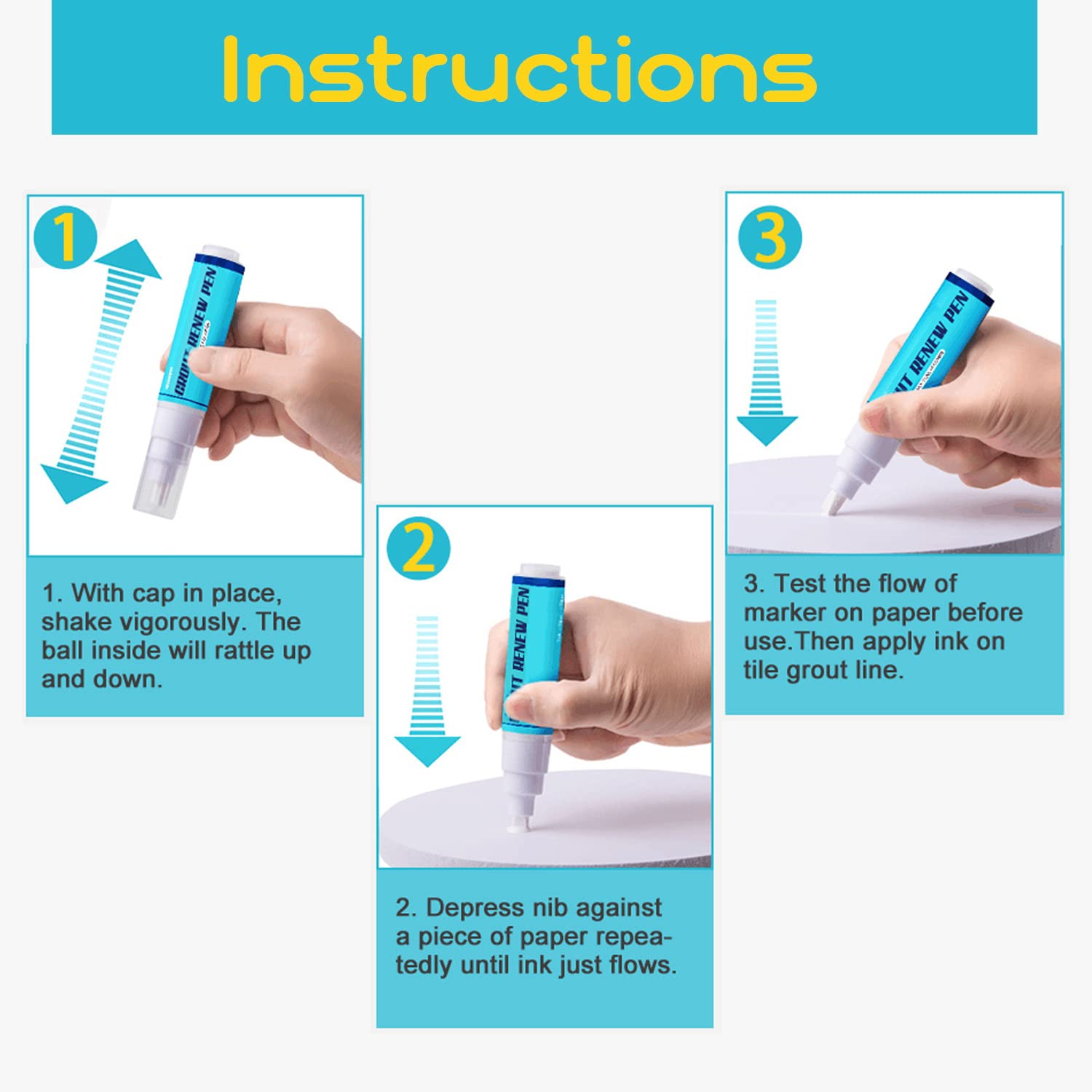 • 2 white grout renew pens, 20g / 0.7 oz ink each, up to 400 meters coverage for 2mm narrow grout line. Soft pen nib allows a smooth flow. Works both on walls and floors. Clean and restore tile grout and leaves them looking clean and protected.