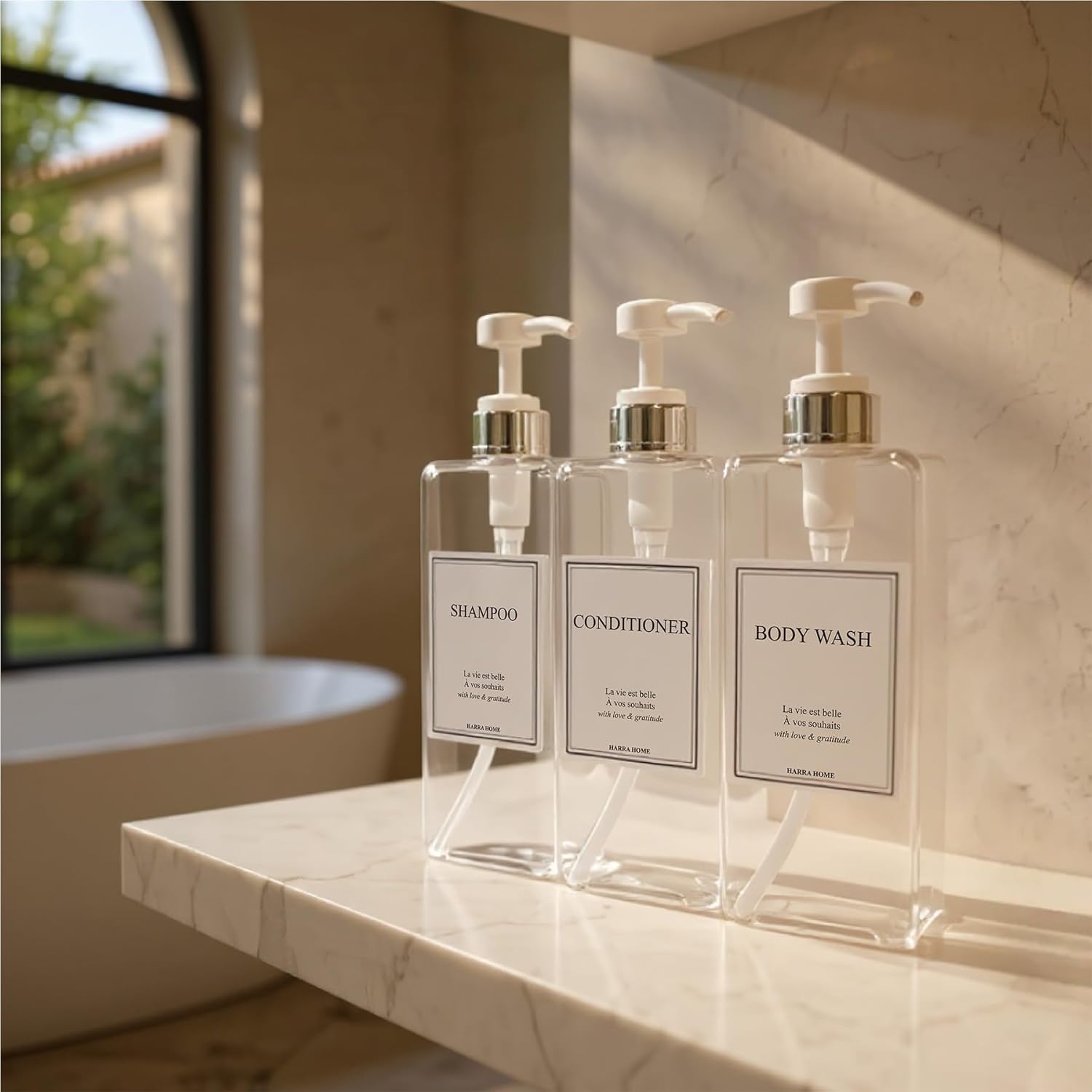• ELEGANT & MODERN DESIGN — Elevate your bathroom decor with HARRA HOME bathroom accessories that create an instant hotel-style bathroom aesthetic. These decorative pump dispensers transform any shower and sink area into a modern bathroom sanctuary without breaking the budget. Perfect bathroom organizers that eliminate clutter from multiple bottles while adding elegance to your space.