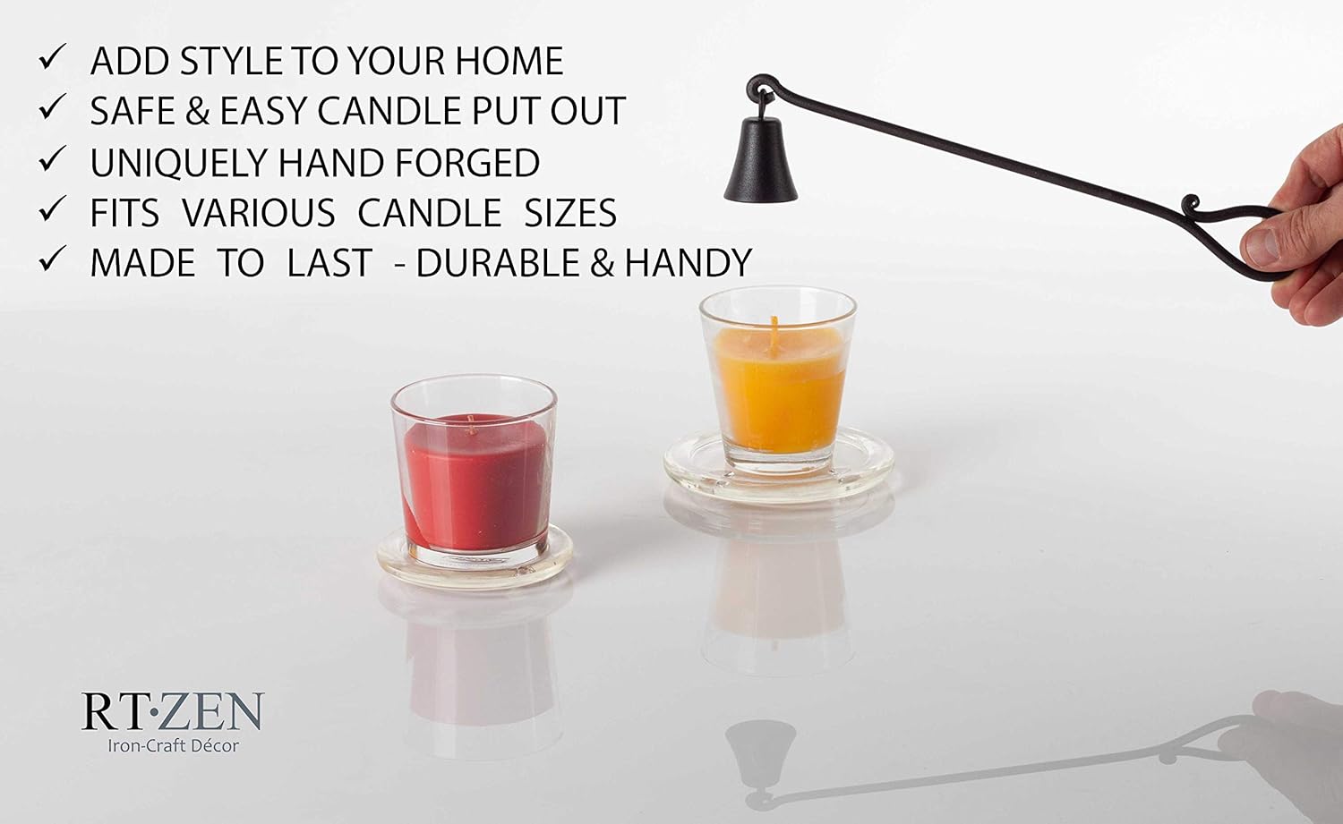 RTZEN Rustic Bell Candle Snuffer - Handcrafted Decorative Rustic Wrought Iron Candle Extinguisher Candlesnuffer with Long Handle - Unique Black Matte Farmhouse Decor Accessories Gift