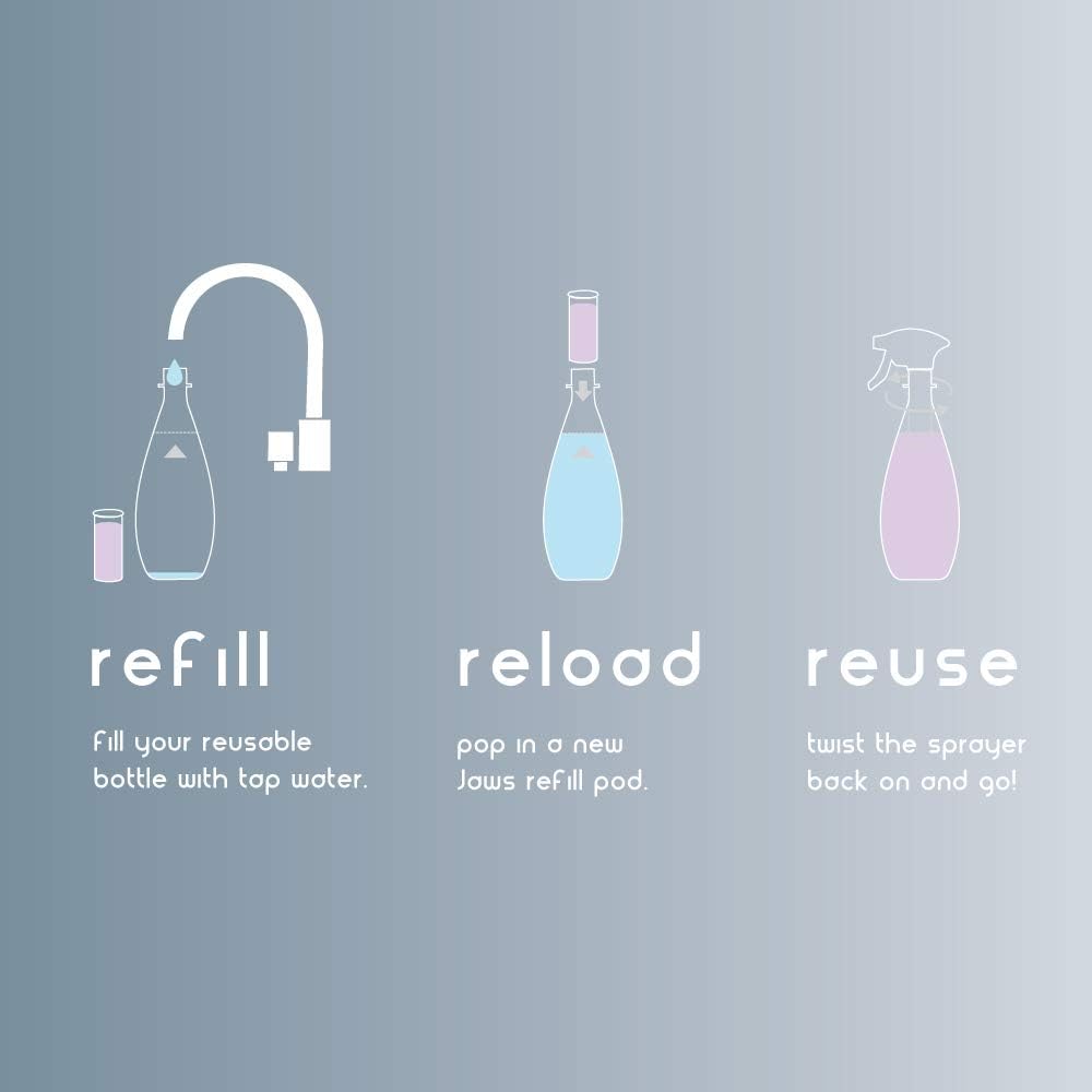 • ECO-FRIENDLY CLEANING SYSTEM: JAWS Refillable Spray Bottles and Refills reduce plastic waste by 83% vs traditional spray bottles.