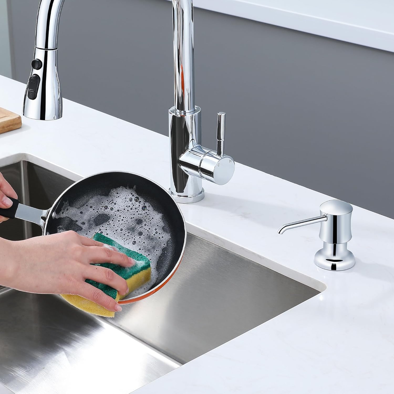 Soap Dispenser for Kitchen Sink Chrome Upgrade Built-in and Refill-from-Top Design with Liquid Hand & Dish Soap Bottle