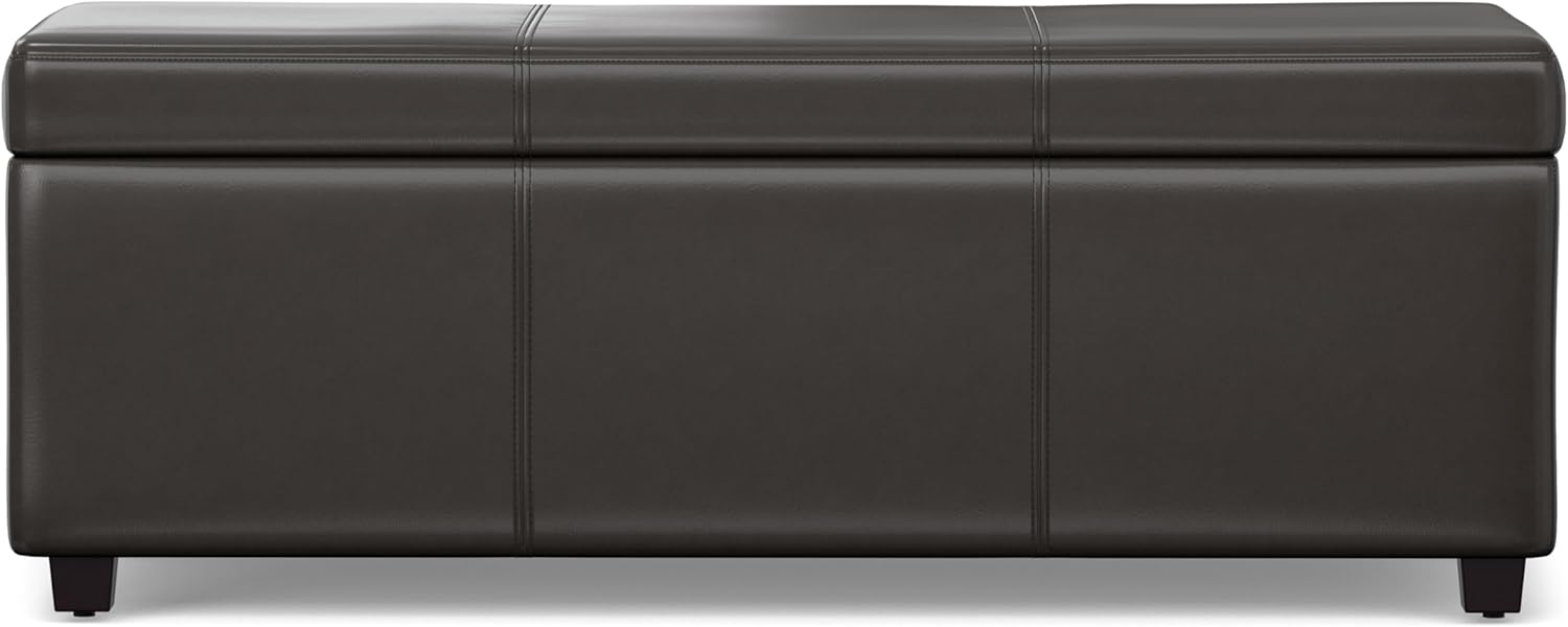 SIMPLIHOME Avalon 44 inch Wide Contemporary Rectangle Lift Top Rectangular Storage Ottoman in Tanners Brown Vegan Faux Leather, Assembled, for the Living Room, Entryway and Family Room.