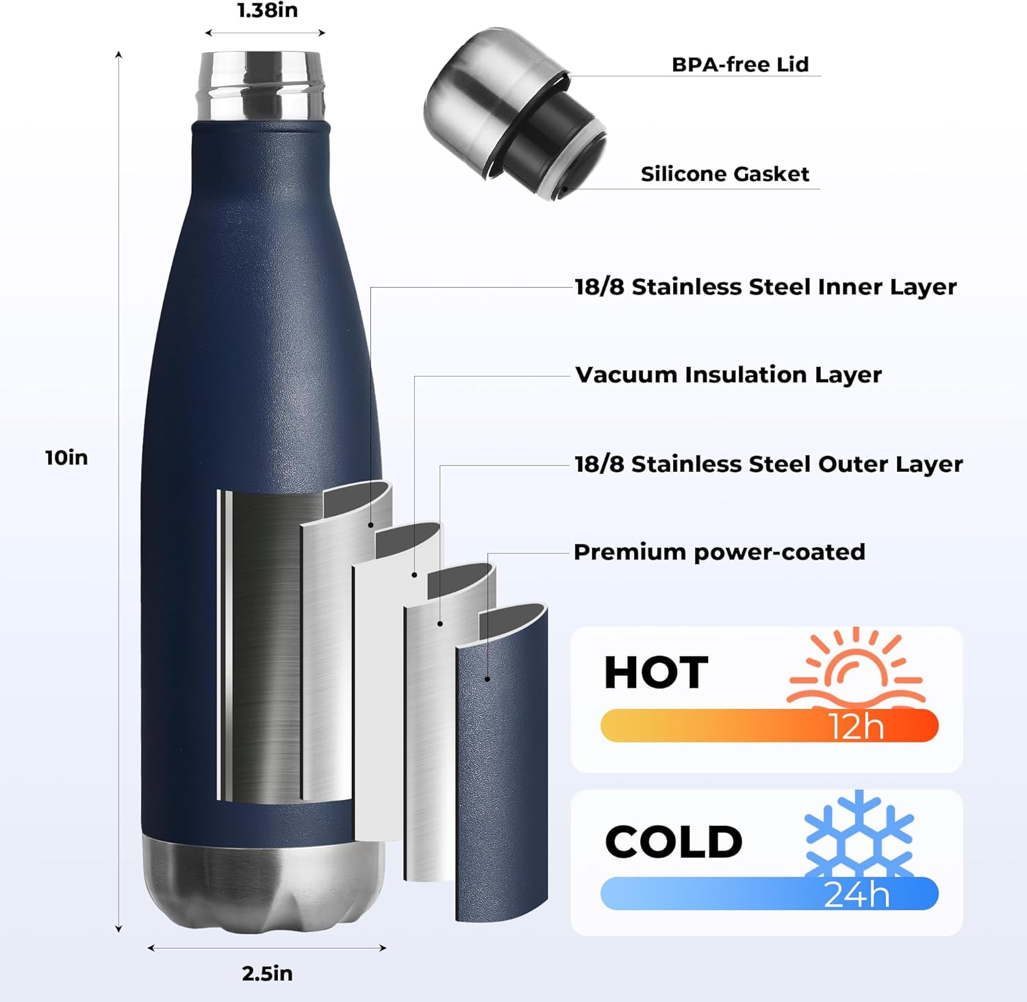 MEWAY 17oz Sport Water Bottle Vacuum Insulated Stainless Steel Leak-Proof Double Wall Cola Shape Water Bottle,Keep Drinks Hot & Cold(Navy,1 Pack)