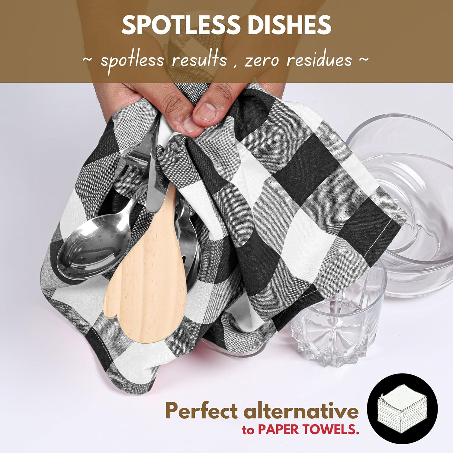 • 100% COTTON MATERIAL: Enjoy our soft, durable, and absorbent towels, perfect for everyday kitchen tasks.