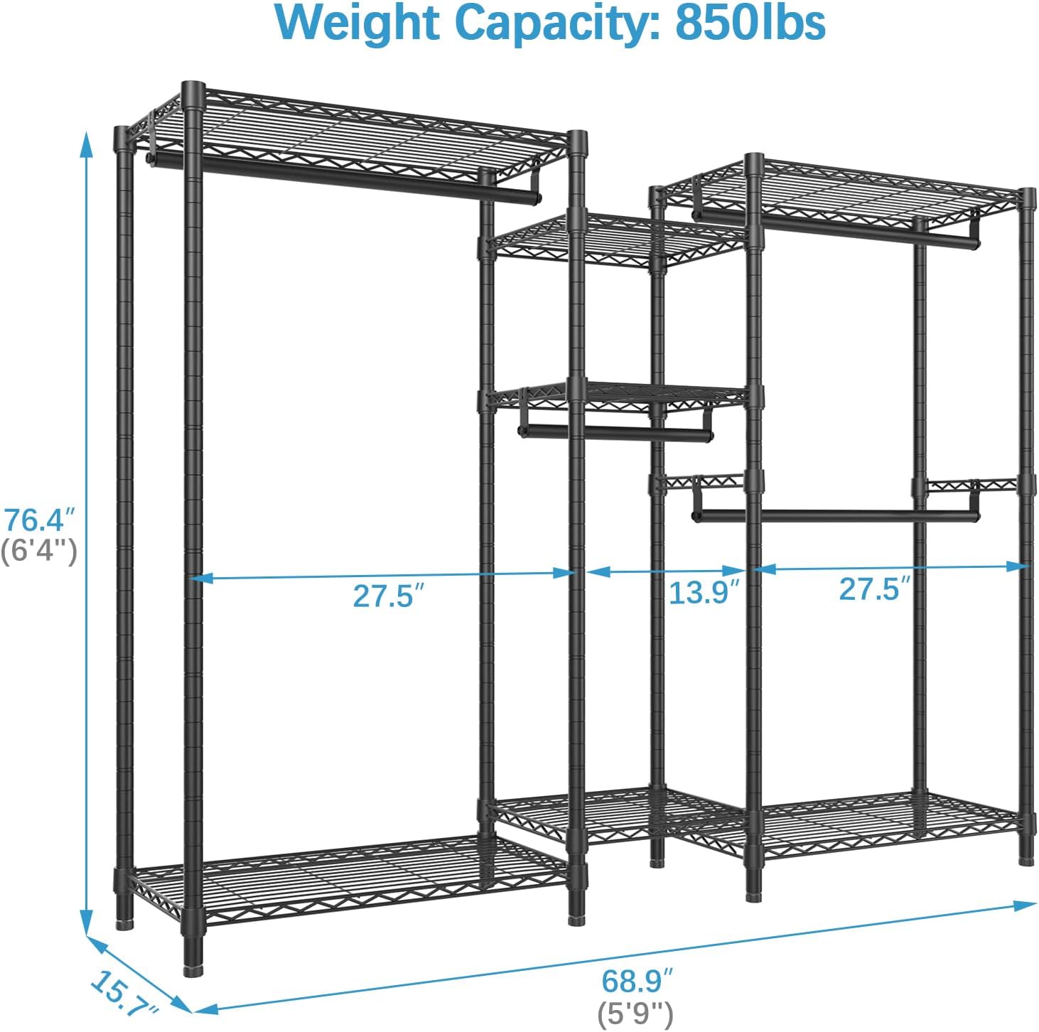 • 850 lb Weight Capacity -- The heavy duty clothing rack supports your storage needs effortlessly without bending or sagging. Ideal as a closet wardrobe, closet storage system, or free standing closet system for bedrooms and walk-in closets