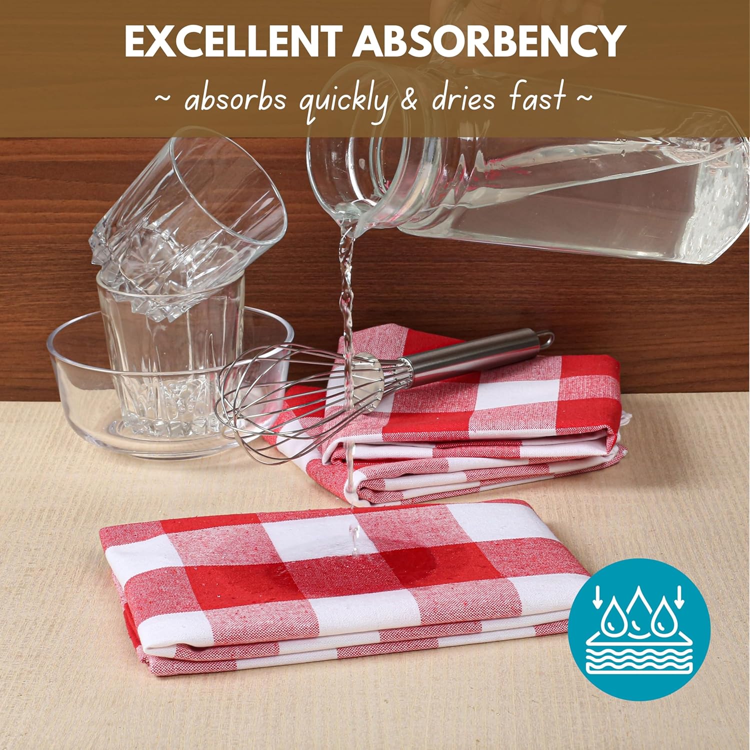 Native Fab 6-Pack Kitchen Towel with Hanging Loop 16x26 inches, Cotton Buffalo Check Kitchen Towels for Cleaning Drying, Washcloths Soft & Absorbent Cloth Rags, Bar Towel, Dish Cloth, Red