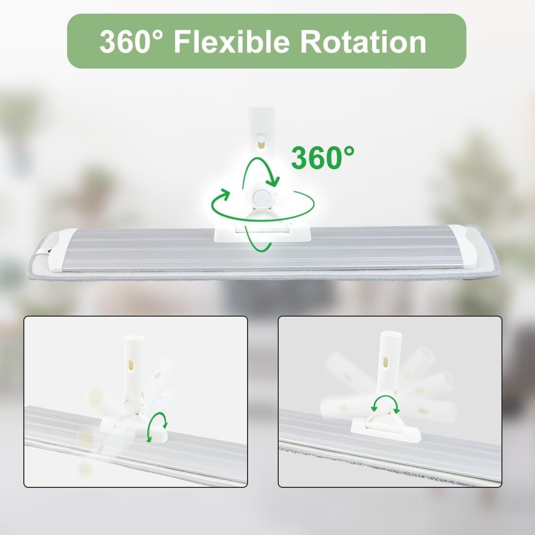 • [Efficient Cleaning Design] 18 inch aluminum alloy wide mop head paired with 360 degree ultra-fine fiber cloth easily matches 17-18 inch replacement pad, the handle length of themop is adjustable and can be extended by 33.27-57.7 inches, suitable for people of different heights for effortless cleaning, only 0.5 cm ultra-thin frame deep into the bottom of furniture.