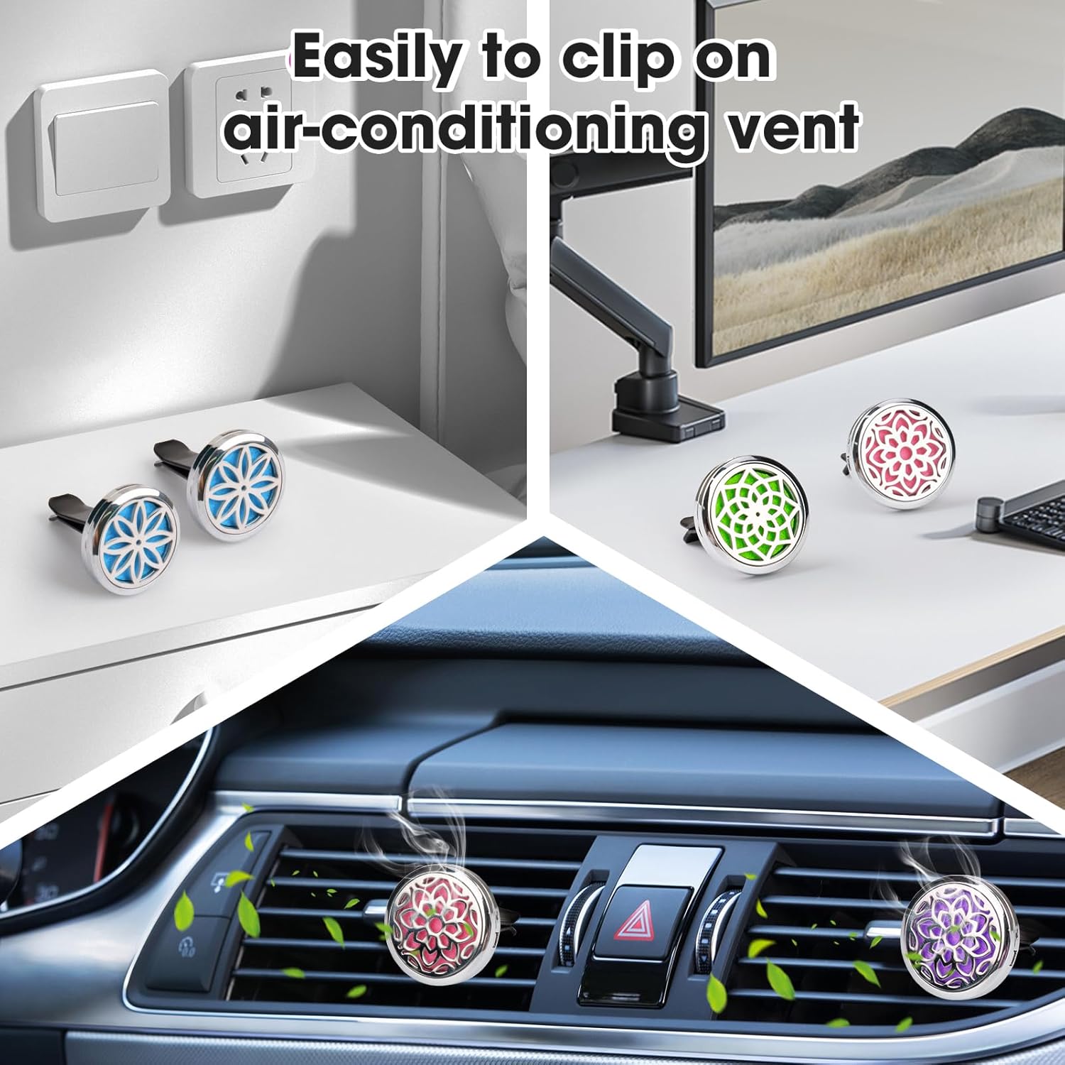 • 【High Quality Material】Essential oil car diffuser vent clip made of high quality alloy, lighter than other vent clips. Car vent air freshener clips work simple and portable. The aroma around you, makes your keep alert when drive, give you a relaxing journey, bring you good mood. (Requires essential oils)