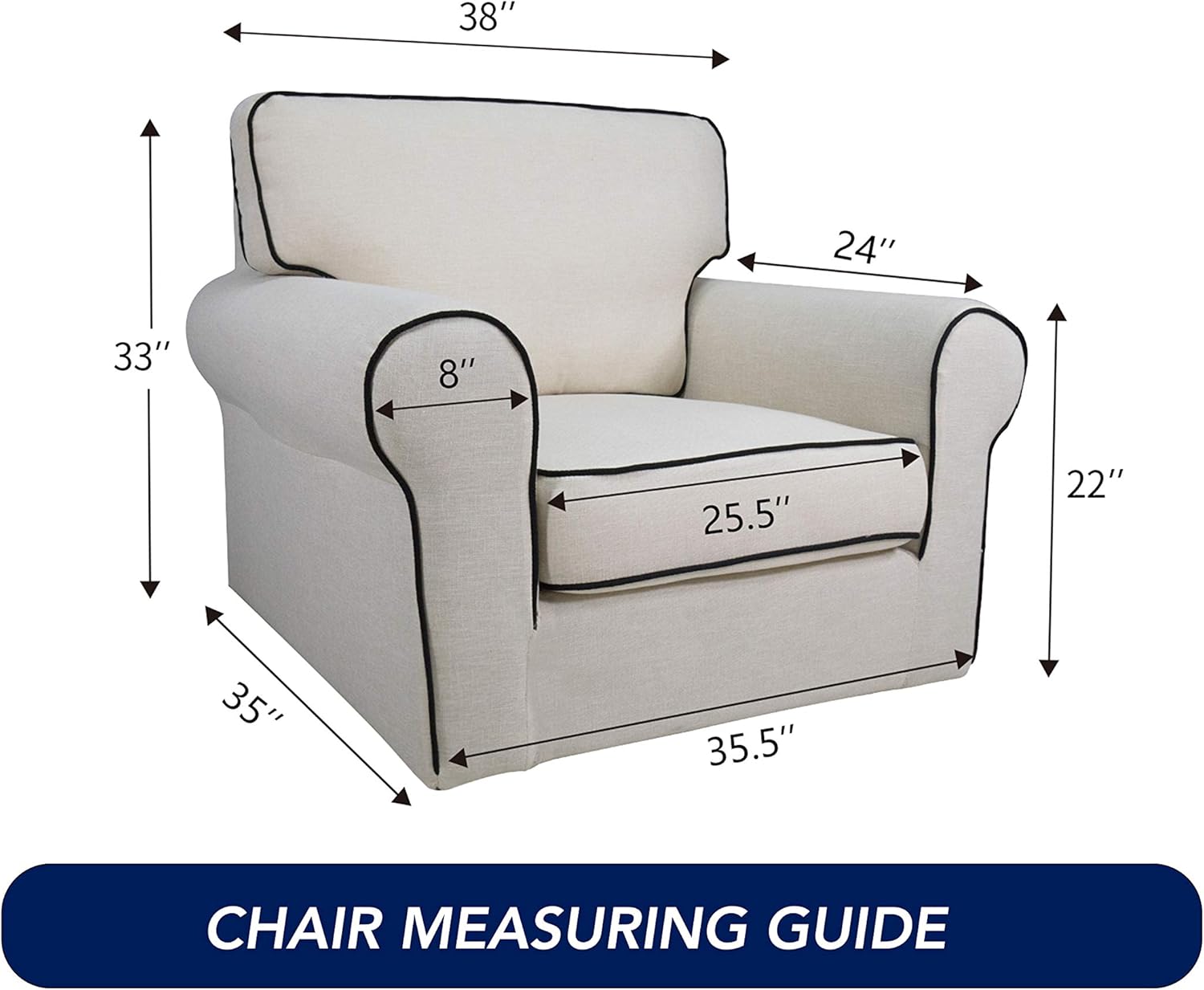 • Super easy to install: You'll be done in no time! Just drape it on, Tuck any extra fabric into the gap/crease and insert the non slip foam anchors between the back and sitting cushions for a seamless look,adjust the elastic straps and VOILA! Use our picture guidelines to ensure a good fit (Installation Instructions Included)