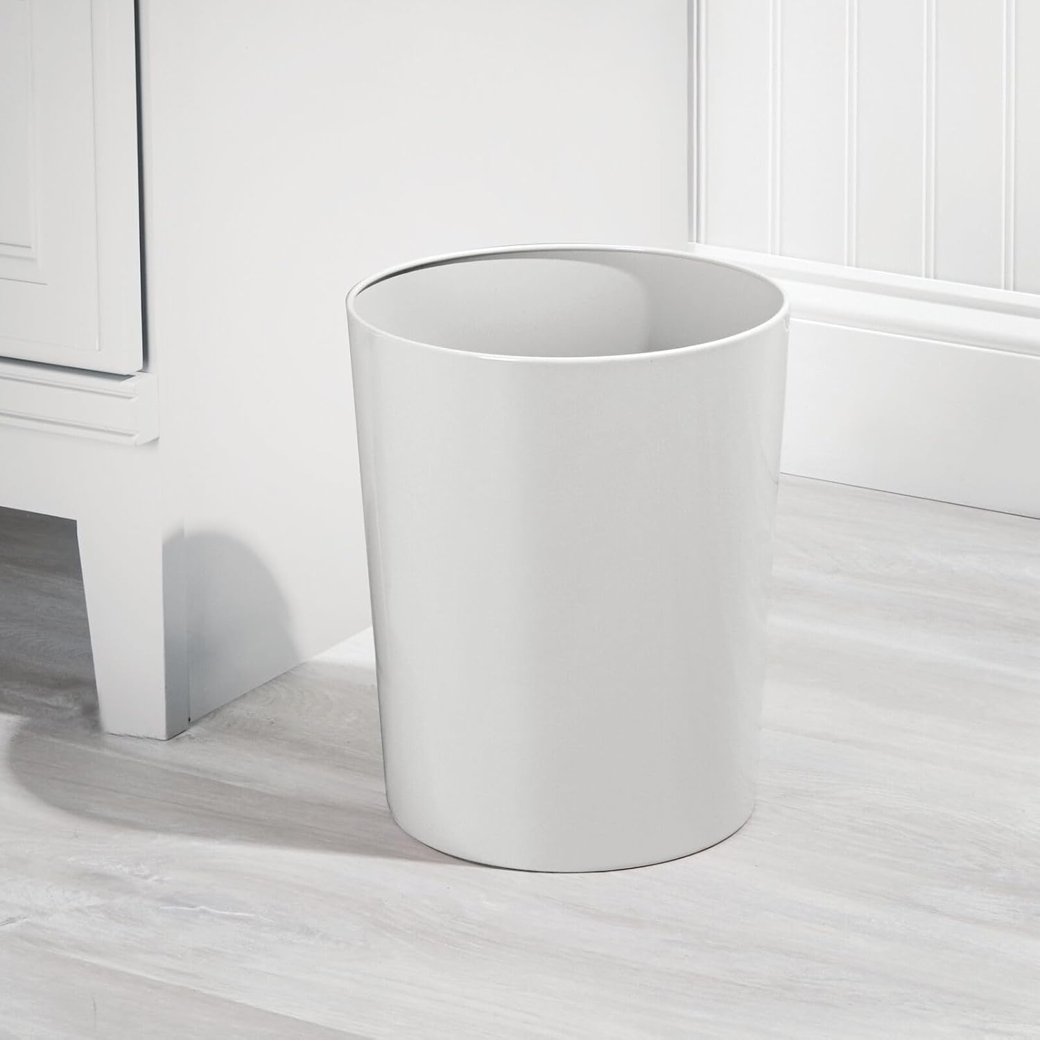 mDesign Round Metal Small 1.7 Gallon Recycle Trash Can Wastebasket, Garbage Container Bin for Bathrooms, Kitchen, Bedroom, Home Office - Durable Stainless Steel - Mirri Collection - Light Gray