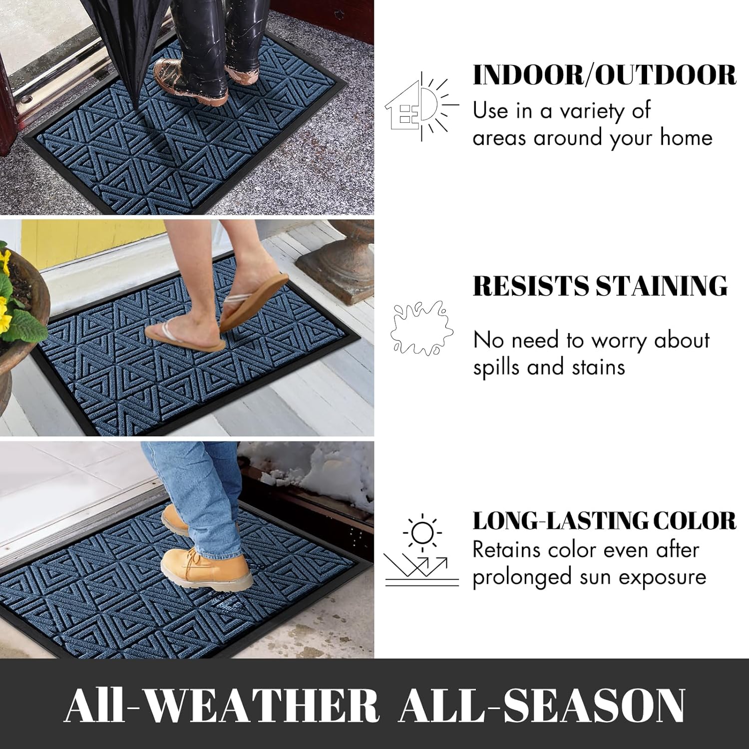 Yimobra Outdoor Mats for Front Door 29.5x17, All-Weather Waterproof Non-Slip Outdoor Door Mat Outside Eentrance, Garage/Patio Entryway Indoor Doormat, Easy Clean, Blue