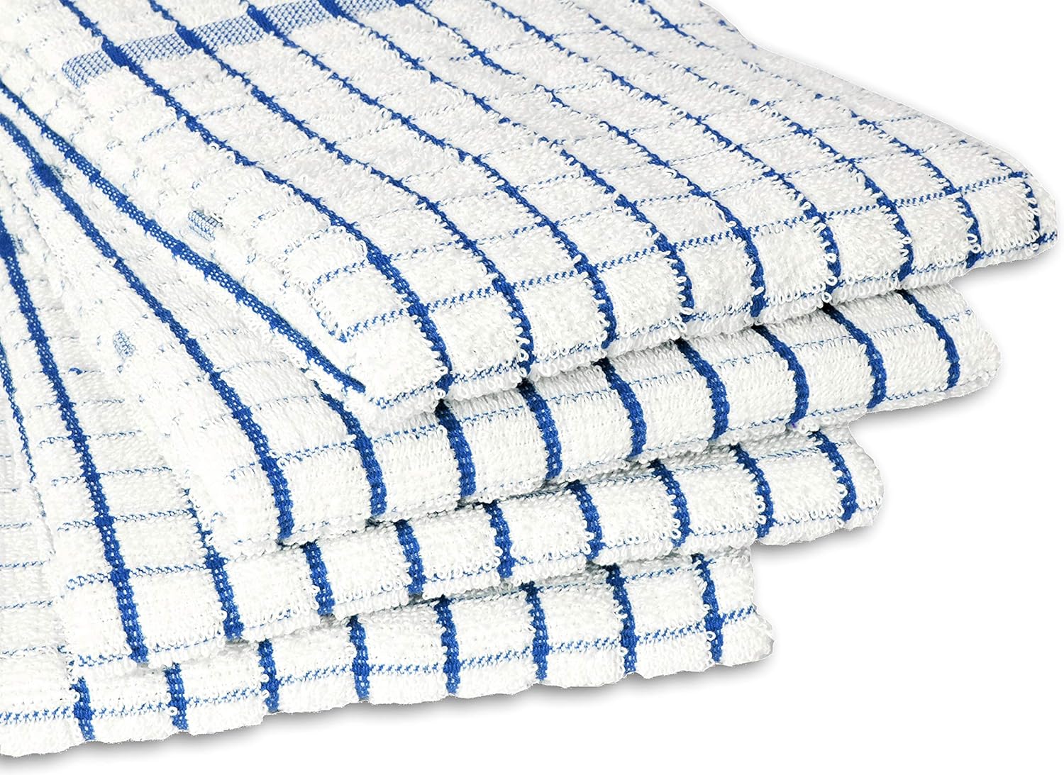 • SUPER ABSORBENT : These kitchen towels are crafted with a terry structure, resulting in a lightweight yet highly absorbent design that excels in quick drying. With an exceptional ability to effortlessly absorb liquid spills or stubborn oil stains, these towels consistently deliver impeccable results. Additionally, their grid design not only enhances their visual appeal but also contributes to their effective absorbency, making them a practical and stylish addition to your kitchen.