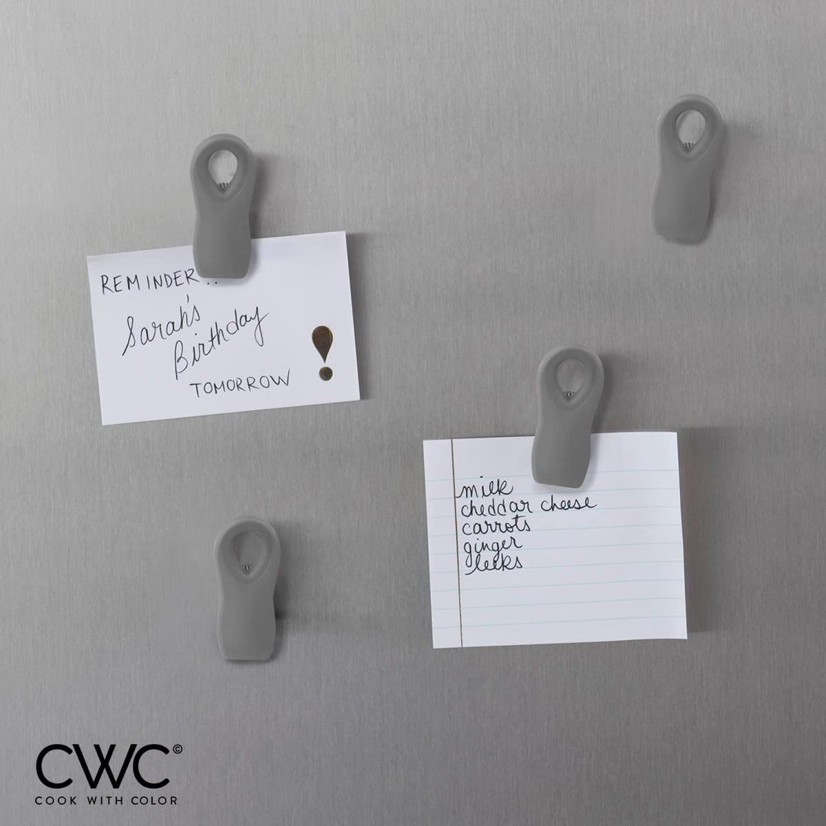 COOK WITH COLOR Bag Clips - Heavy Duty Chip Clip and Refrigerator Magnet Clips for Food Storage with Air Tight Seal Grip, Grey, Pack of 8