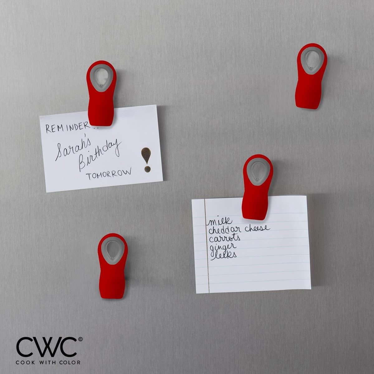 COOK WITH COLOR Bag Clips - Heavy Duty Chip Clip and Refrigerator Magnet Clips for Food Storage with Air Tight Seal Grip, Red, Pack of 8
