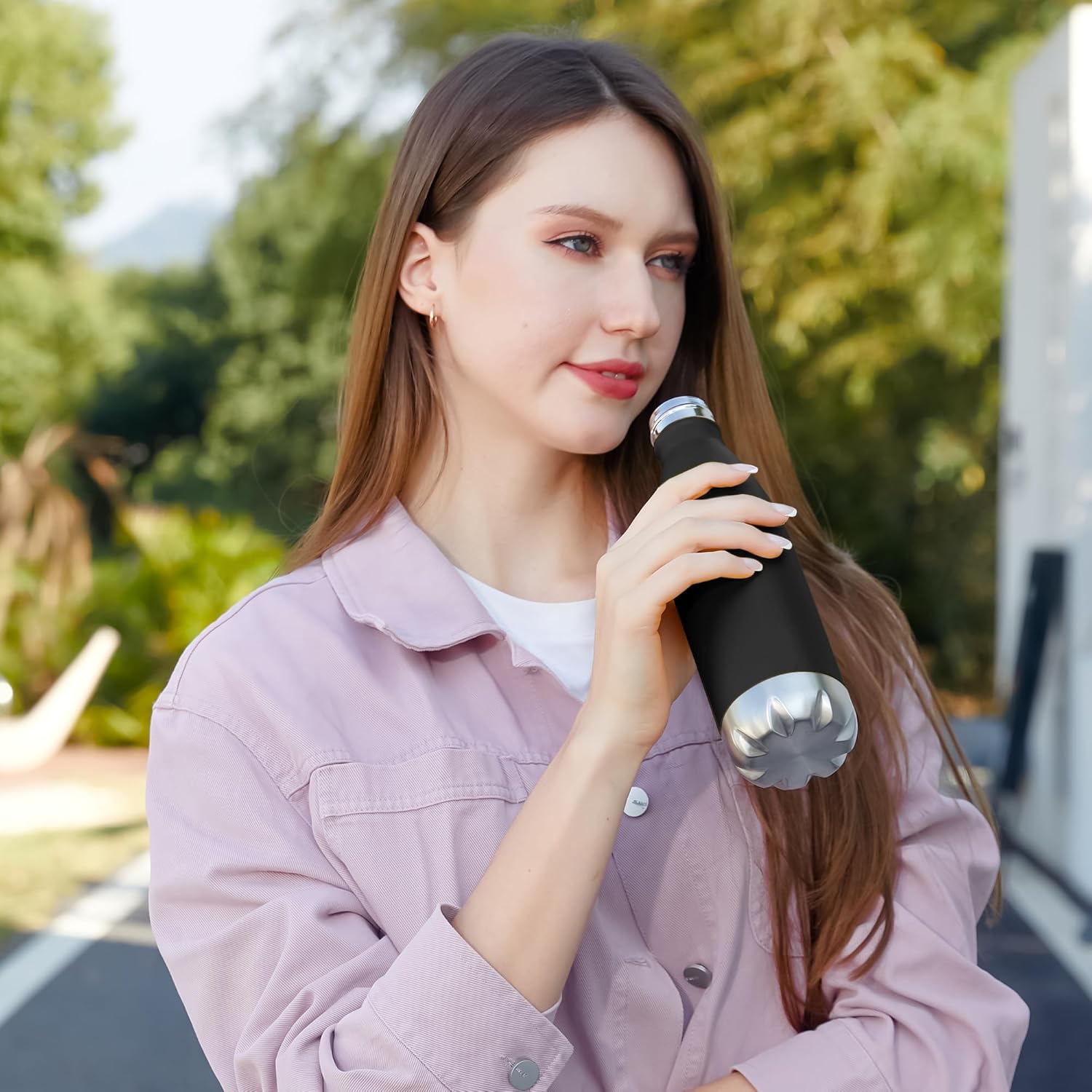 • TAKE IT WITH YOU:Our stainless steel water bottles are perfect for daily use and can be taken to anywhere - hiking, biking, beach, camping, gym, school or company! Put your portable sports water bottle in your gym bag or the side pouch of your backpack or as your daily companion. Keep you healthy and hydrated