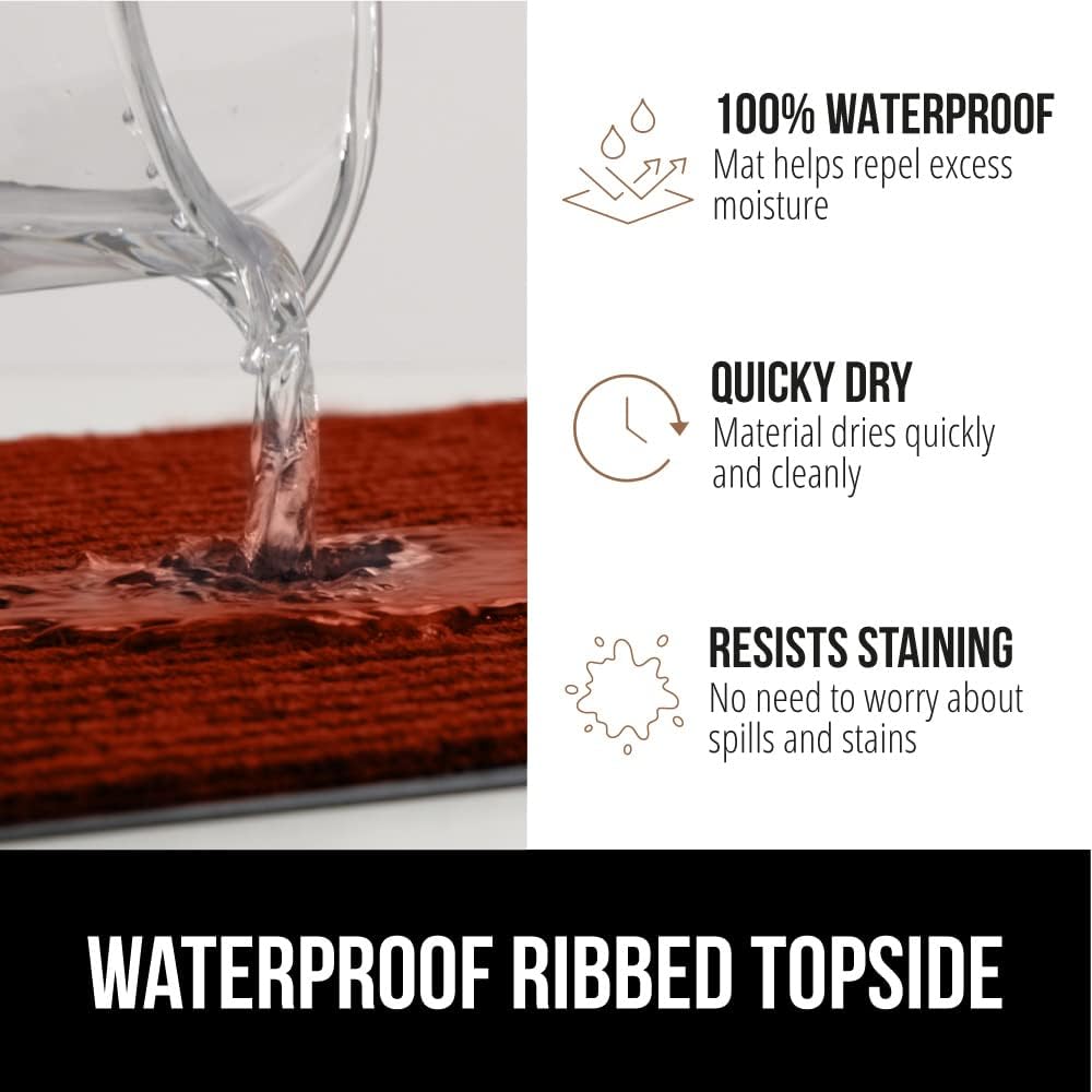 • WATERPROOF RIBBED TOPSIDE: ultra absorbent and 100% waterproof, the mat's surface helps to capture excess water and moisture; plus, premium fabric dries quickly and resists staining and fading for long lasting use