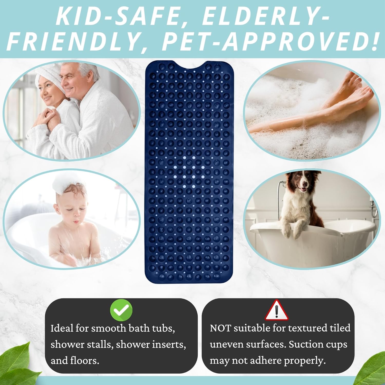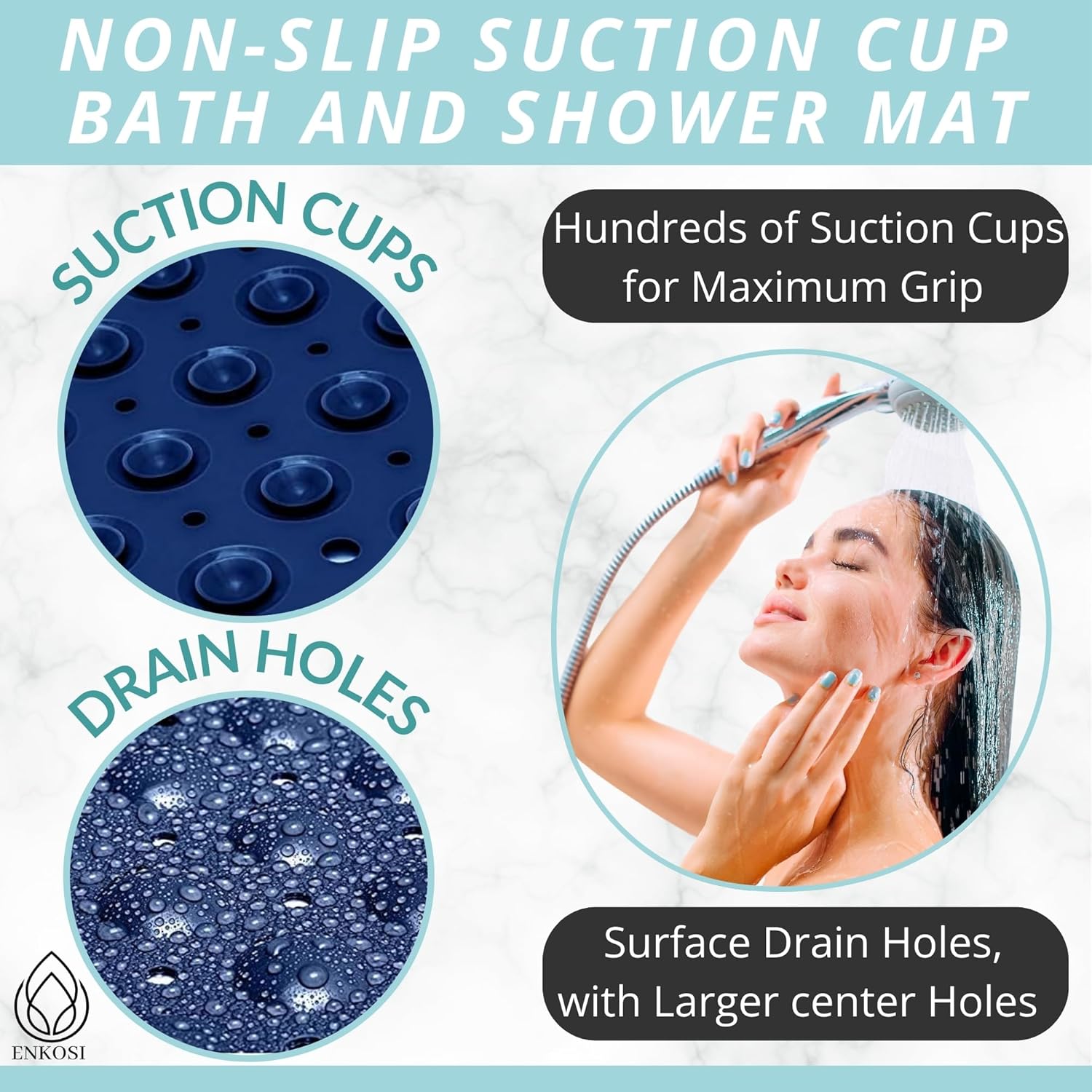 ENKOSI Bath Mat - Large Non Slip Bathtub & Shower Mat - Extra Long 40 x 16 Inch Bathroom Mats for Tub Nonslip Anti Slip Bathmats (40x16 Navy 1-Pack)