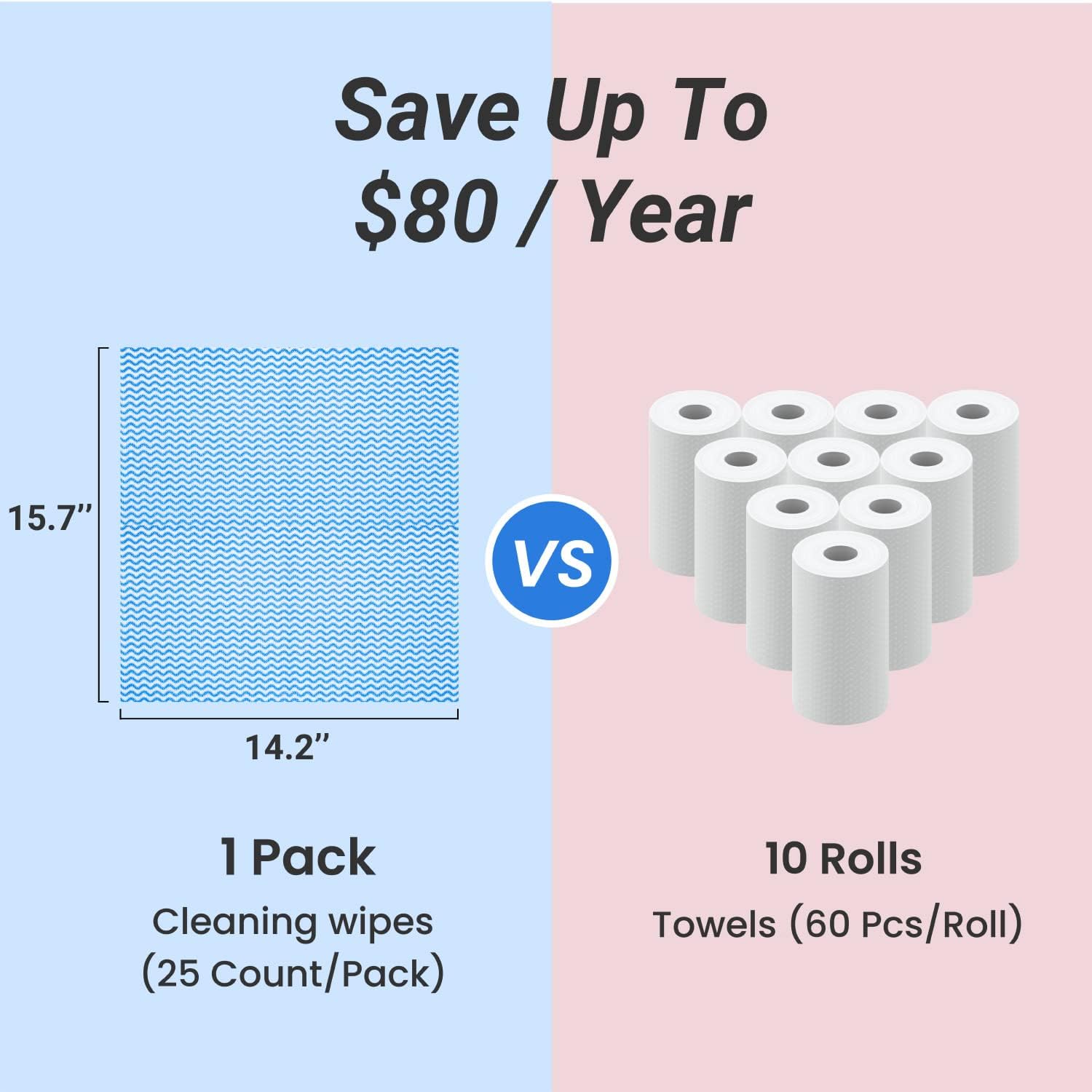• ECONOMICAL AND ENVIRONMENTAL: Do not waste money on the endless disposable towels, one pack of cleaning wipes (25 Count) is equivalent to 10 rolls of paper towels. Save your money and use less of the environmental resources, making them very economical.