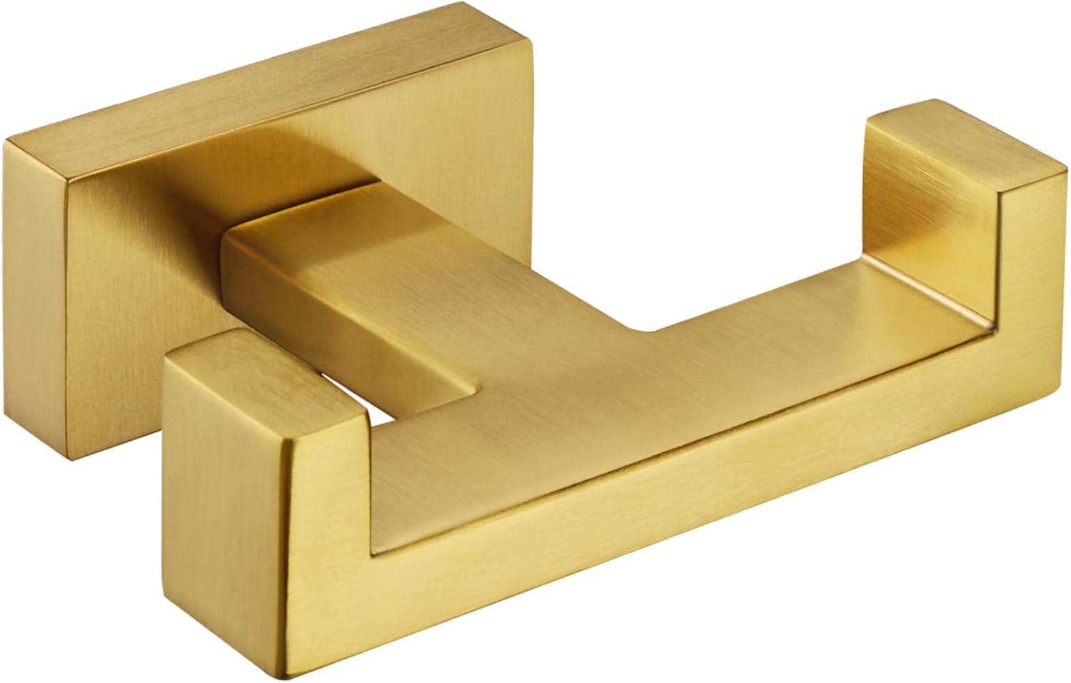 Angle Simple Towel Hook for Bathroom, SUS 304 Stainless Steel Hand Towel Holder, Double Robe Coat Hook for Wall, Brushed Gold