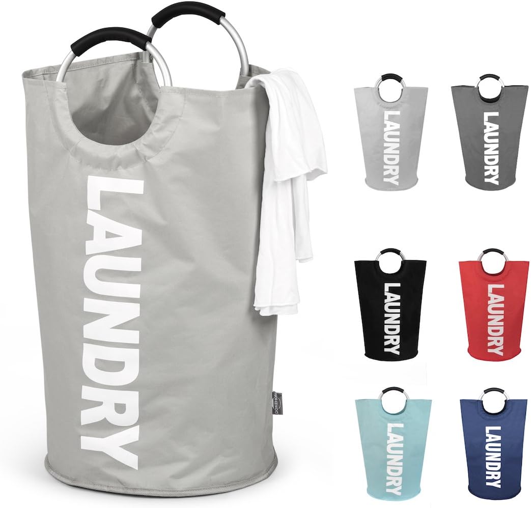 DOKEHOM 125L X-Large Collapsible Washing Laundry Basket Bag (7 Colors) for Bedroom, Fabric (Grey, XL)