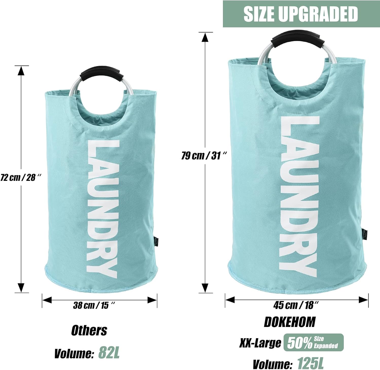 DOKEHOM 125L X-Large Collapsible Washing Laundry Basket Bag (7 Colors) for Bedroom, Fabric (Light Blue, XL)