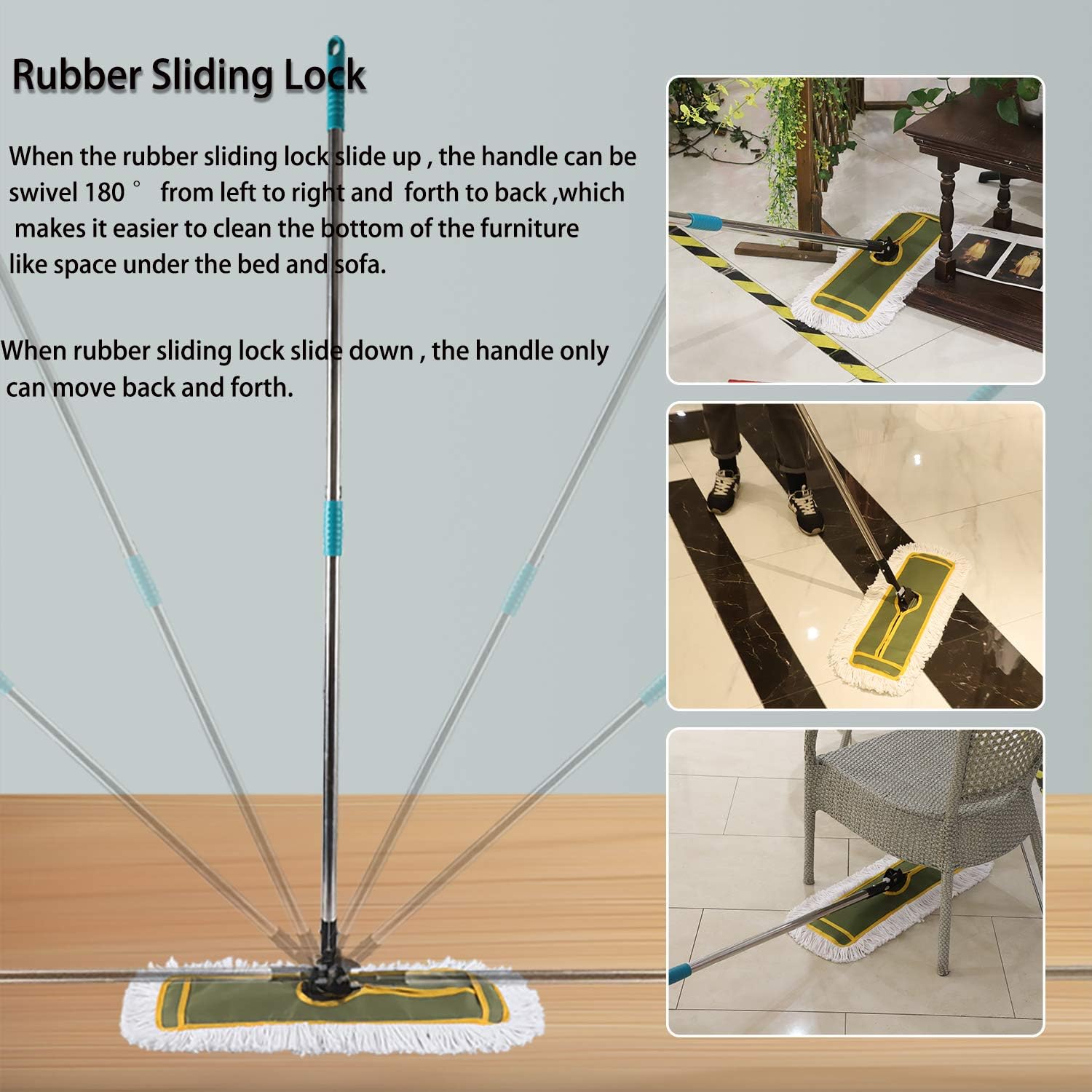 • * 63 inch in length, 180°swivel handle with lock, gives you comfortable with flexible use.