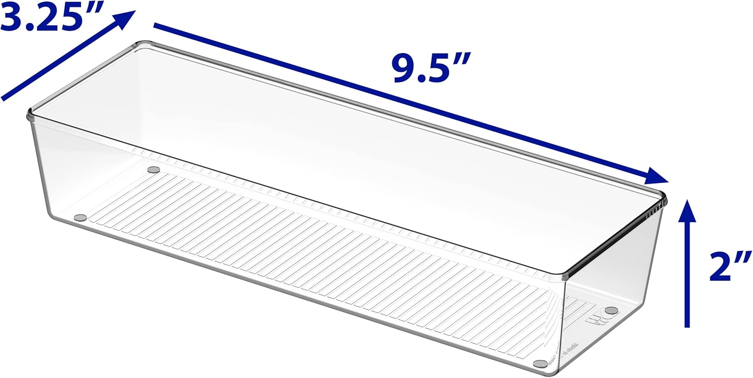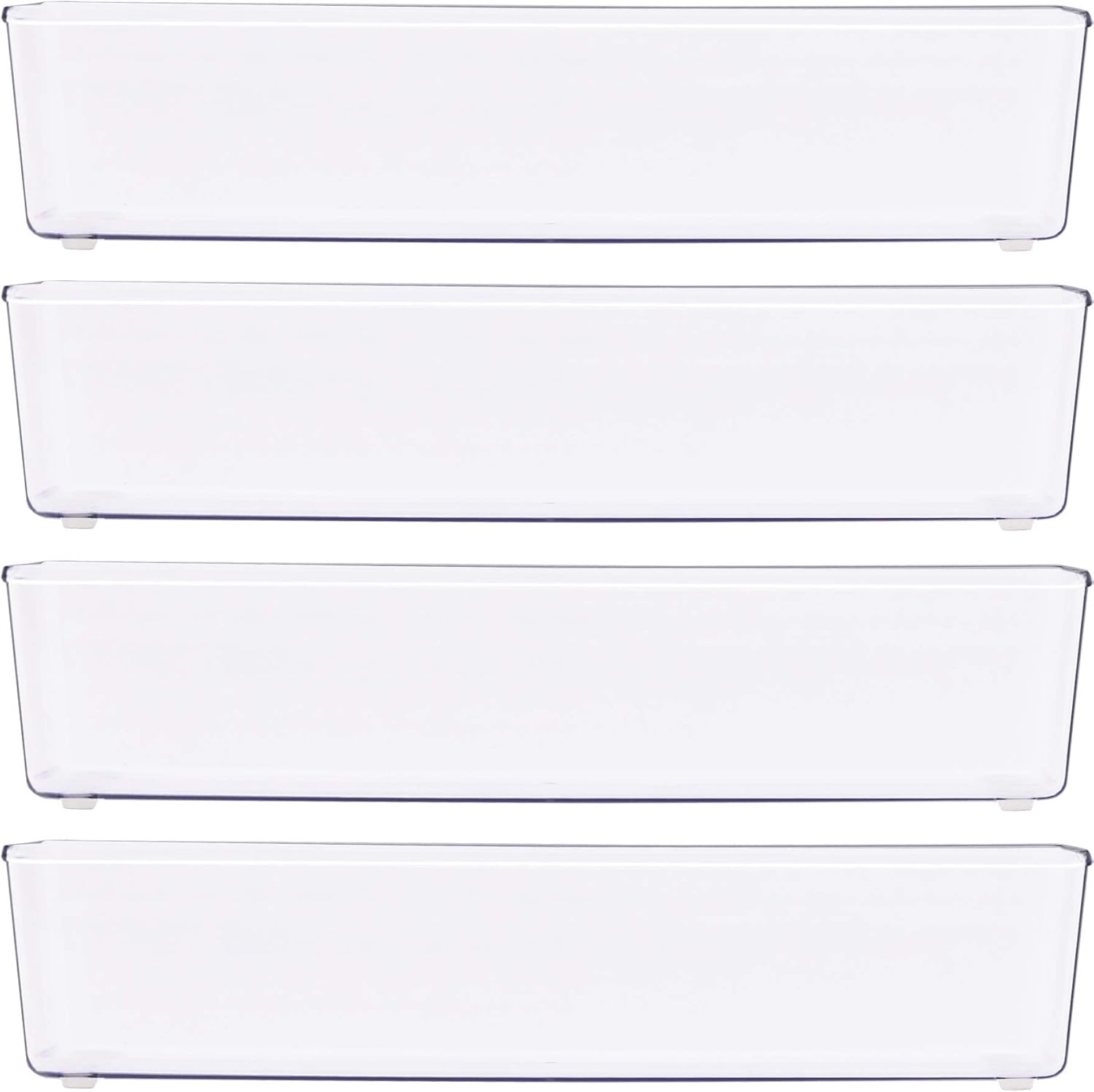 Simple Houseware Clear Drawer Organizer for Office Bin Desk Storage, 3.25"x 9.5", 4 Packs