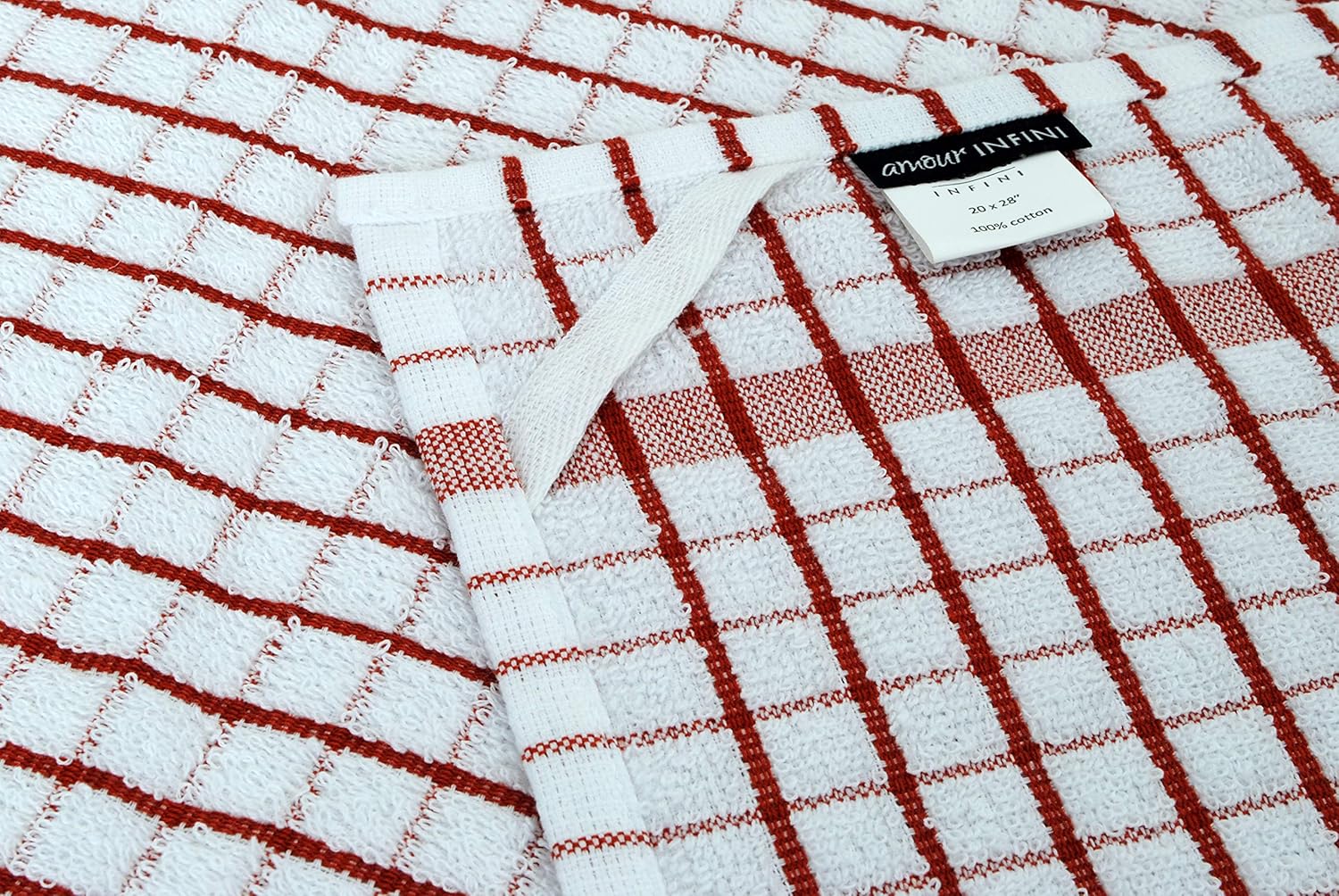 AMOUR INFINI Kitchen Towels Set of 4 - Highly Absorbent, Super Soft Terry Cotton 20x28 Inch Dish Towels with Hanging Loop - Hand & Tea Towels for Cleaning & Drying Dishes (Rust)