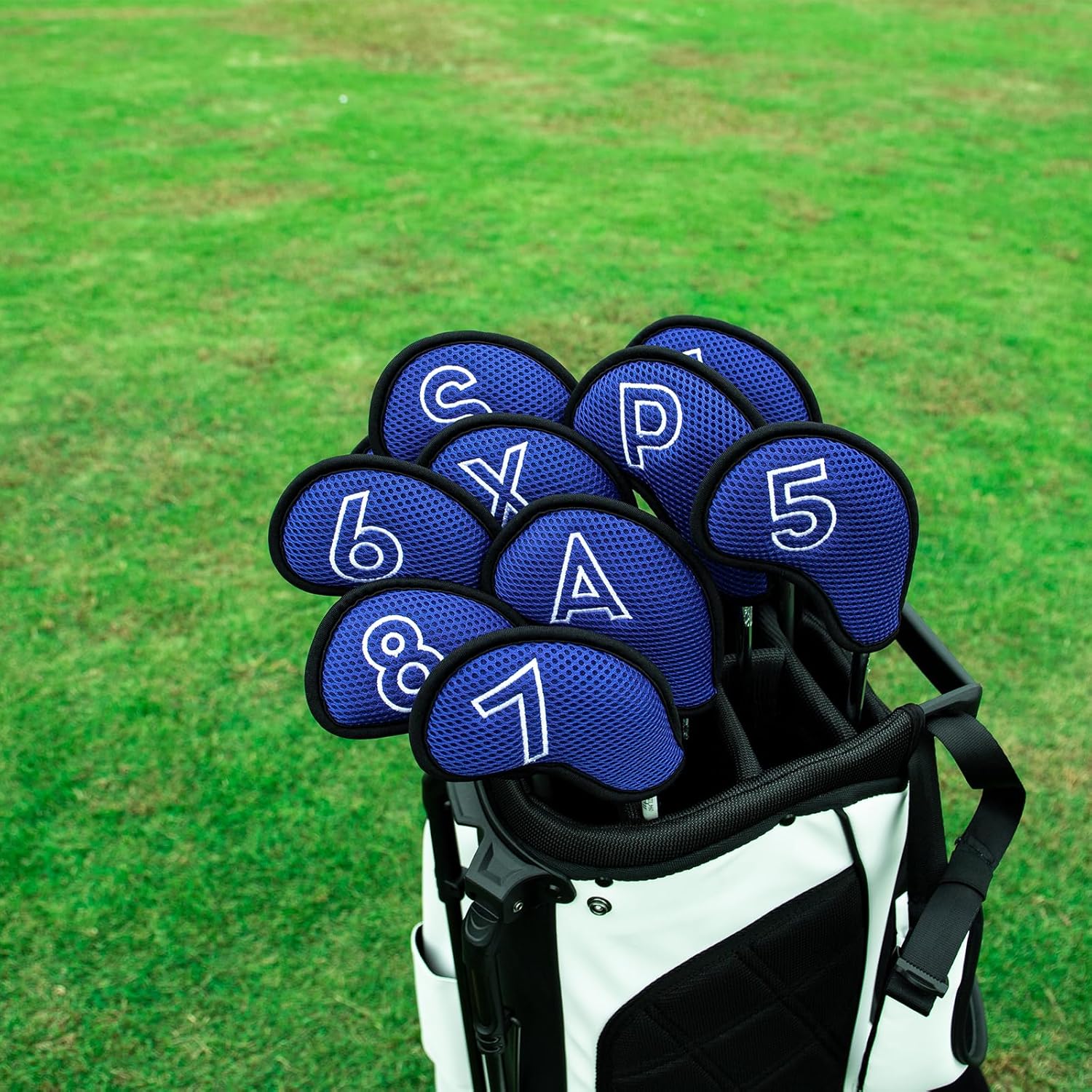 Montela Golf Iron Covers,Golf Iron Head Covers Mesh Golf Iron Covers Set 10pcs Golf Iron Headcovers,Golf Club Head Covers for Iron with Magic Tape Fit Most Brand 4-9 APSX
